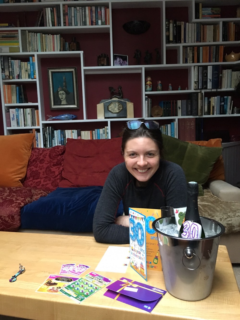A notre arrivée dans notre Airbnb, je découvre un seau de champagne et des cadeaux envoyés par mes parents pour mes 30 ans. Adorable ! Organisé dans le plus grand secret par mon cher et tendre. Happy I am!