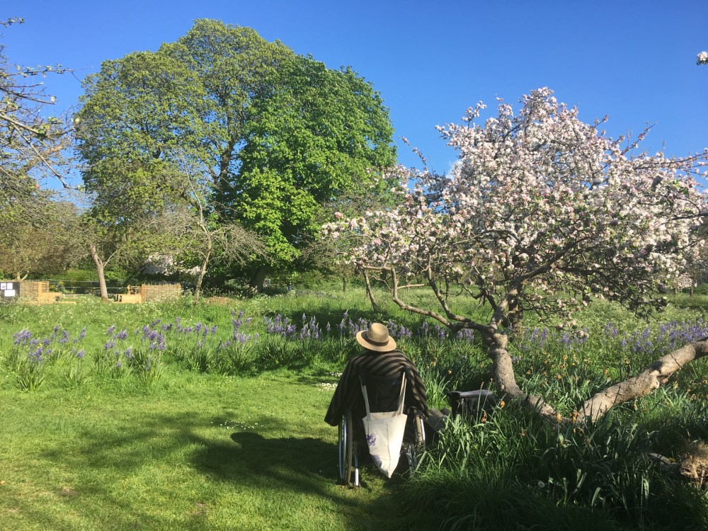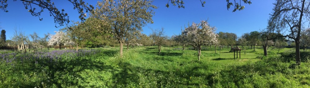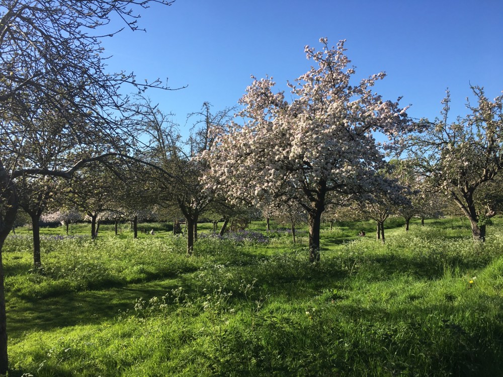 Nous entrons dans le verger où jeunes et vieux viennent rêvasser et se prélasser sous les cerisiers en fleurs…