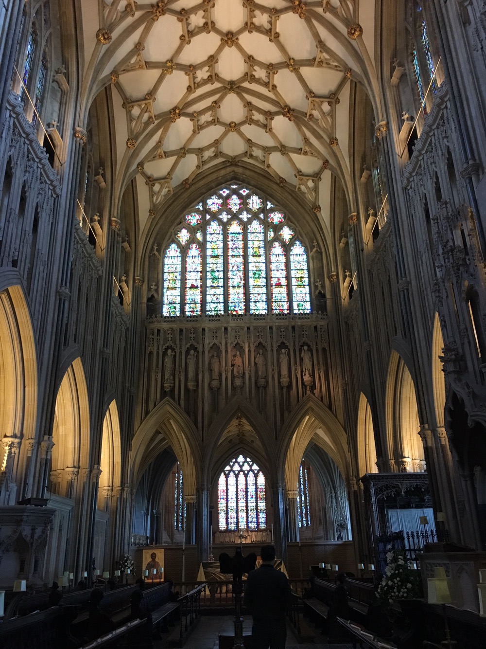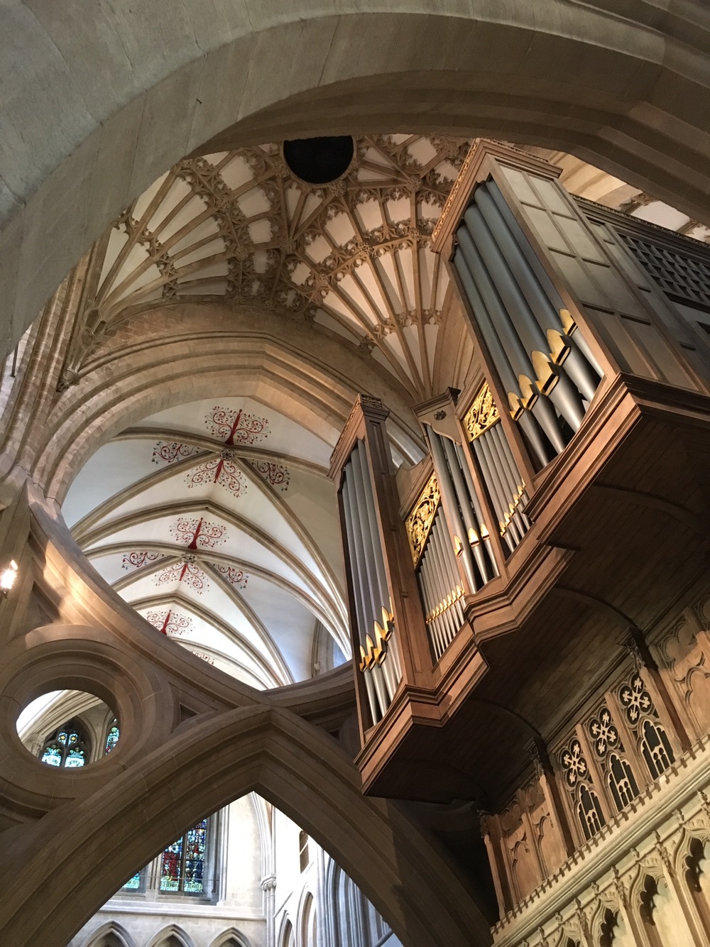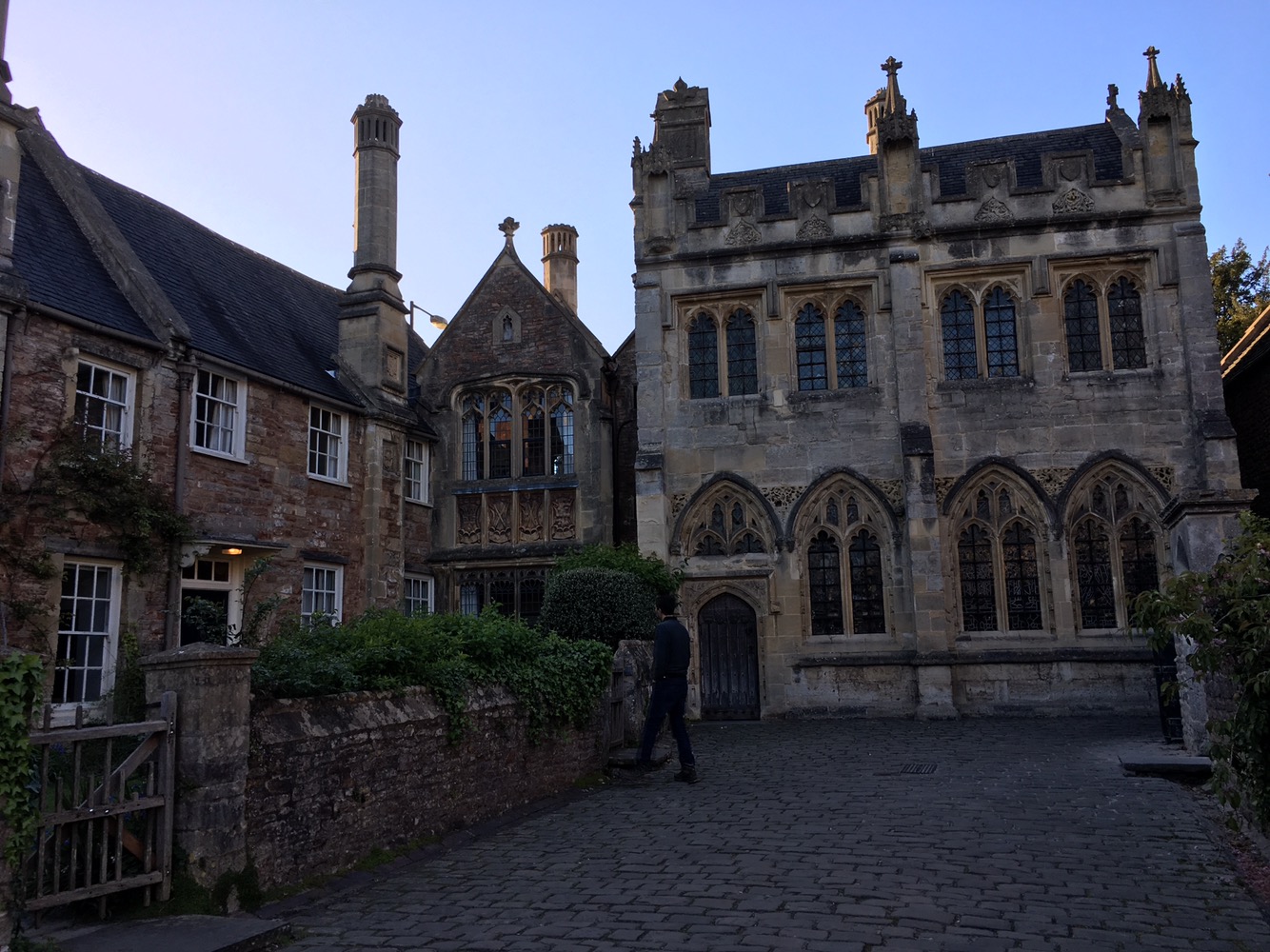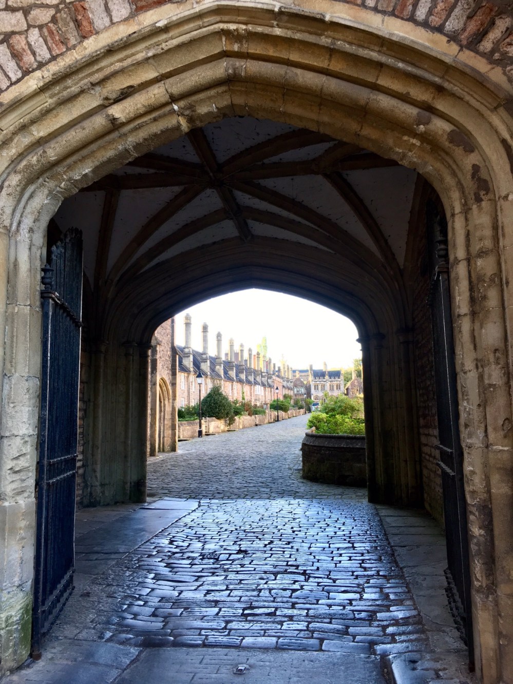 Ci-dessus le porche d’entrée du Vicar’s close, plus ancienne rue médiévale d’Europe, toujours habitée ! Aménagée au XIVe siècle pour loger les choristes de la Cathédrale, la vingtaine de maisons en pierre se tient encore fièrement debout, surmontées de leurs drôles de cheminées. Fascinant.