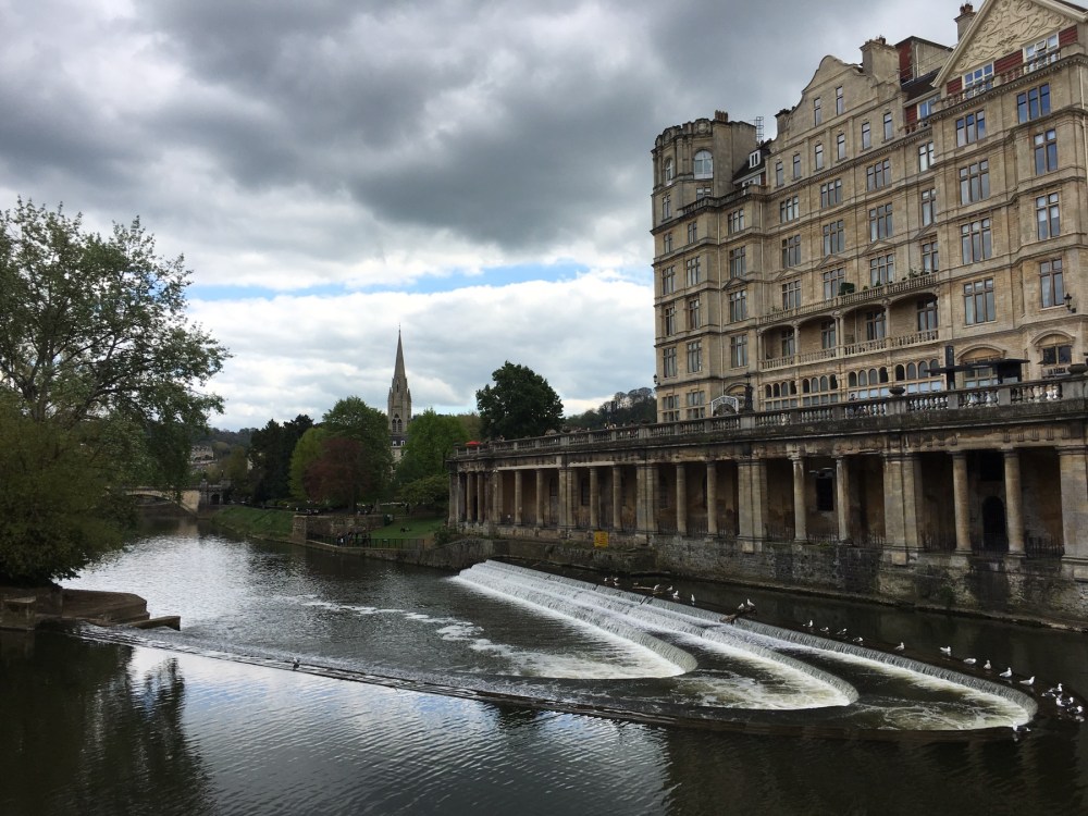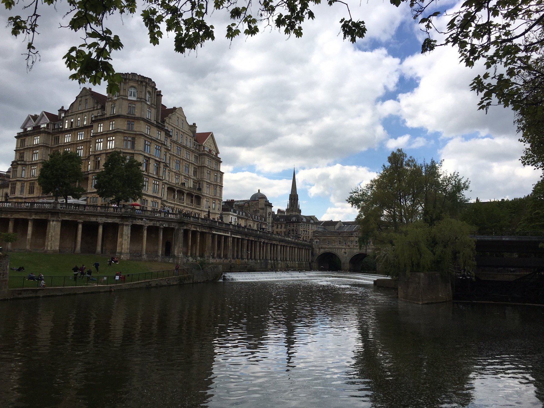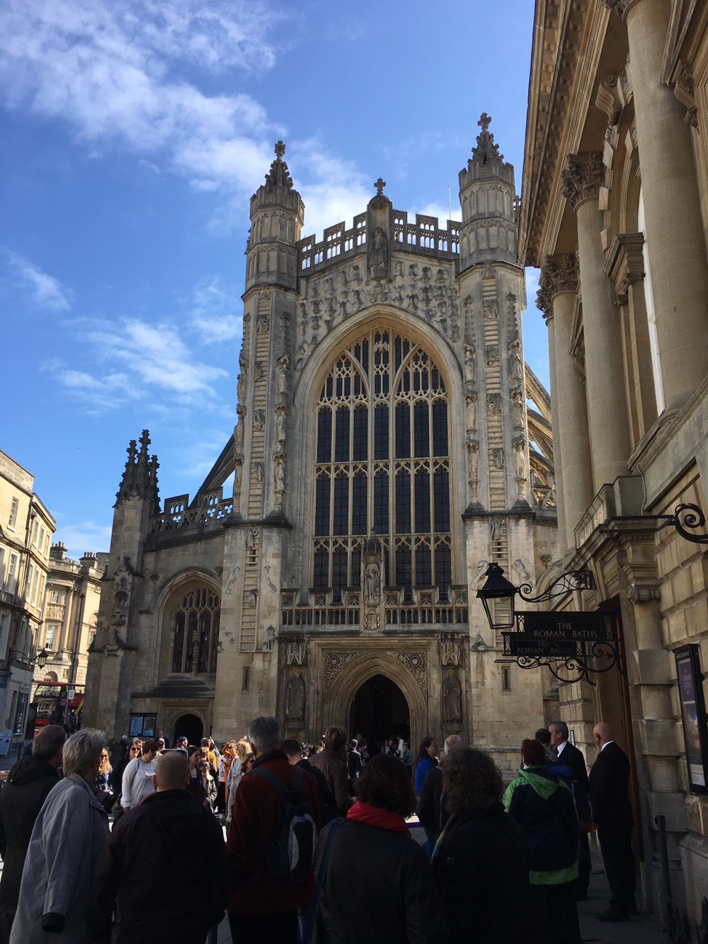 Découverte extérieure des thermes de Bath, construites « à l’imitation des Romains » au XVIIIe siècle, alors même que les architectes ignoraient l’existence des véritables thermes romains juste en dessous ! Il faudra attendre la toute fin du XIXe siècle pour qu’ils soient exhumés. 5 siècles avant JC, les Romains ayant envahis cette partie de l’Angleterre exploitaient déjà le million de litres d’eau fourni chaque jour par la source naturelle d’eau à 50 degrés ! Incroyable ! Nous ne visiterons malheureusement pas les thermes en question affichant des prix d’entrée au moins aussi incroyable(memt élevés) que cette histoire !