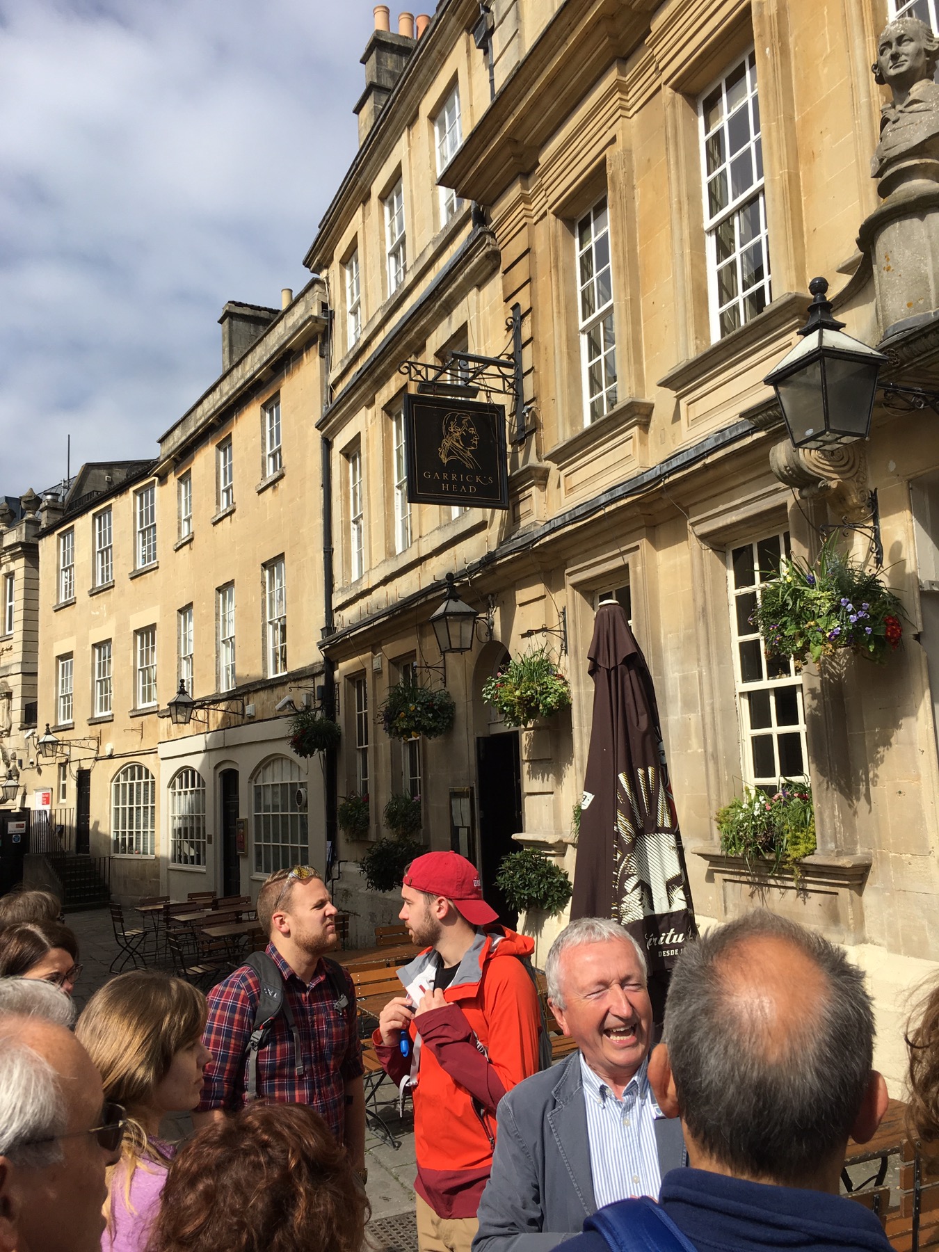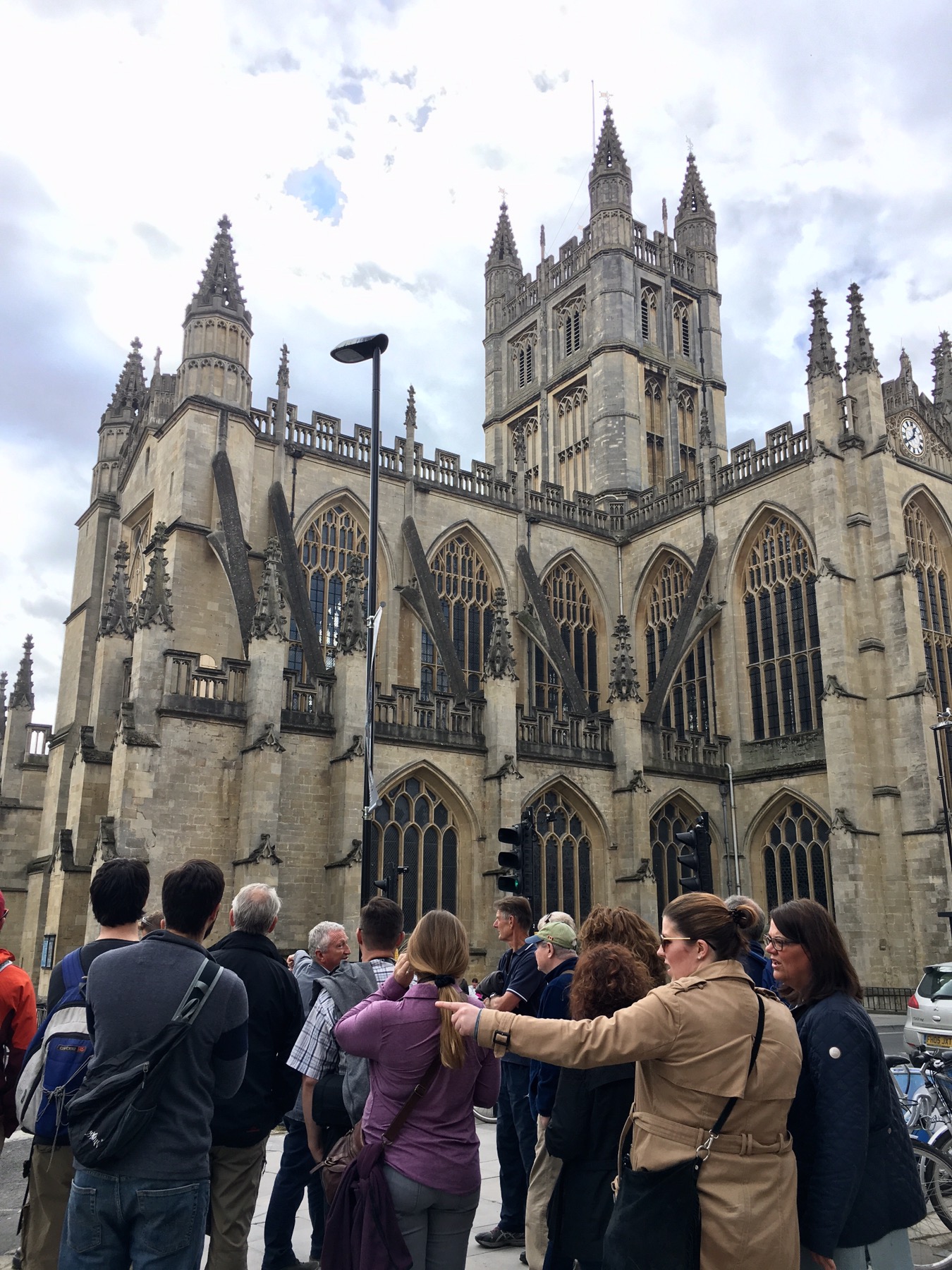 A 10h30, nous rejoignons les thermes de Bath, point de rencontre pour notre visite guidée gratuite avec Andrew, un bon gentleman anglais comme on les aime ! C’est parti pour 2h30 de balade et d’Histoire dans l’une des plus belles villes d’Angleterre, classée à l’Unesco en 1987 (elle fête donc aussi ses 30 ans d’une certaine façon !).