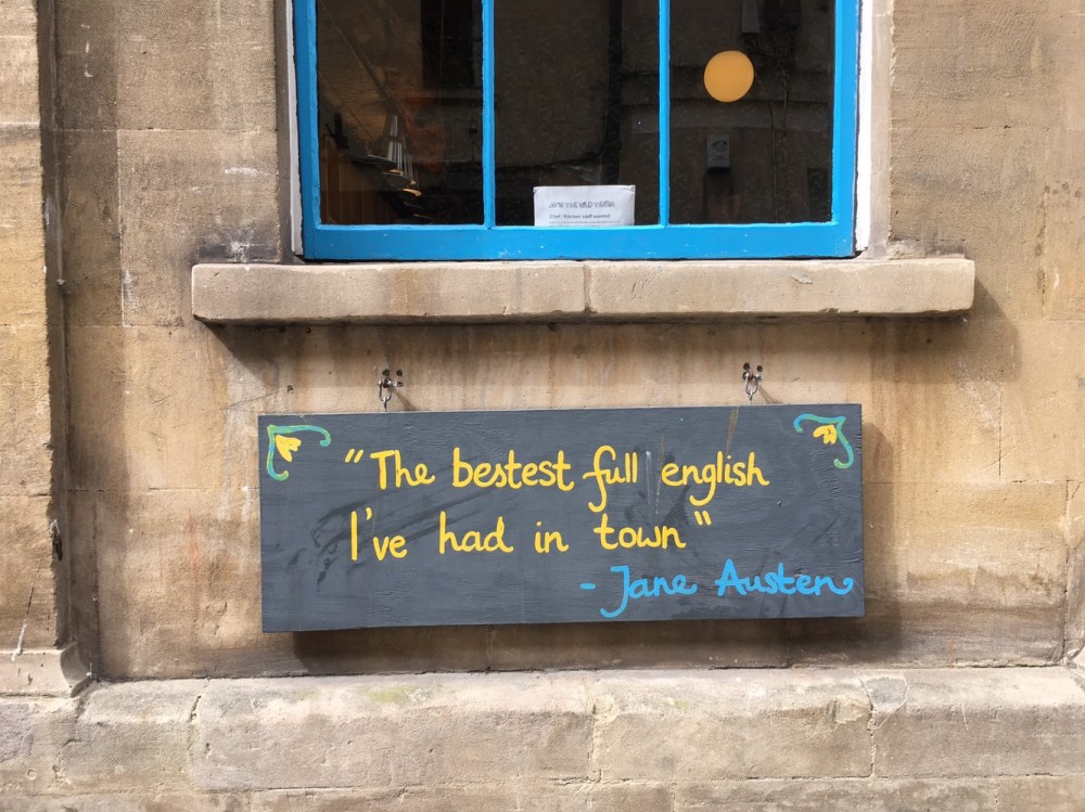 Plaque d’une citation célèbre de l’auteure britannique Jane Austen. We can’t say the bestest, of course!