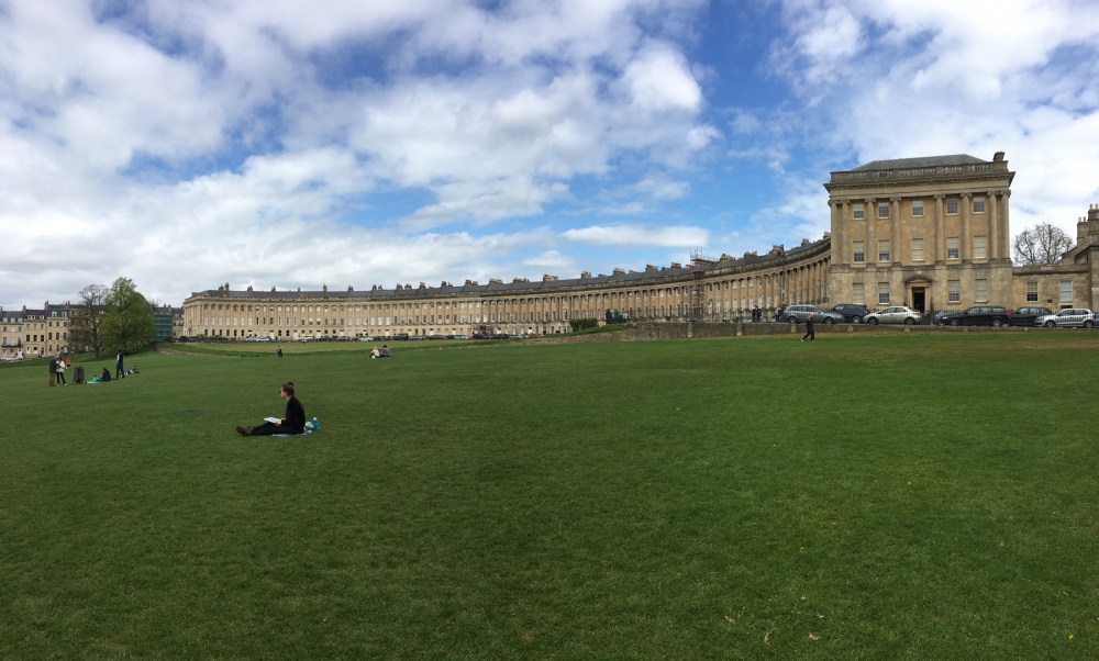 Ci-dessus The Royal Crescent, ensemble de 30 maisons classiques en pierre de Bath, jointes entre elles par de très épurées colonnes ioniques. Son architecte, John Wood fils, est avec son père et son frère, l’architecte qui a fait de Bath la ville splendide qu’elle est devenue au XVIIIe siècle. A cette époque, reines, princesses et riche société se précipitèrent à Bath pour ses vertus mais aussi et surtout pour être vues ! A l’époque, il fallait en être ! Les belles demeurent ont alors poussé comme des champignons. Sauf que contrairement à ailleurs, toute la ville a été édifiée dans une parfaite harmonie architecturale ! D’où son succès !
