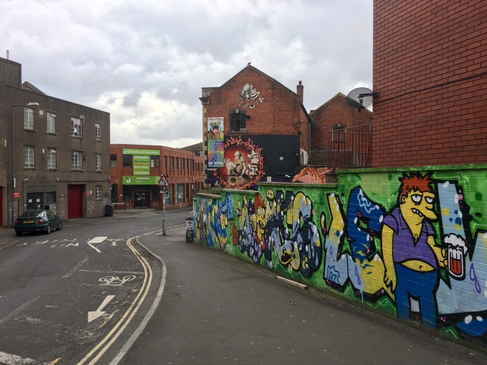 Arrêt dans une rue où certaines maisons n’ont jamais été nettoyées de la pollution industrielle du XIXe siècle !