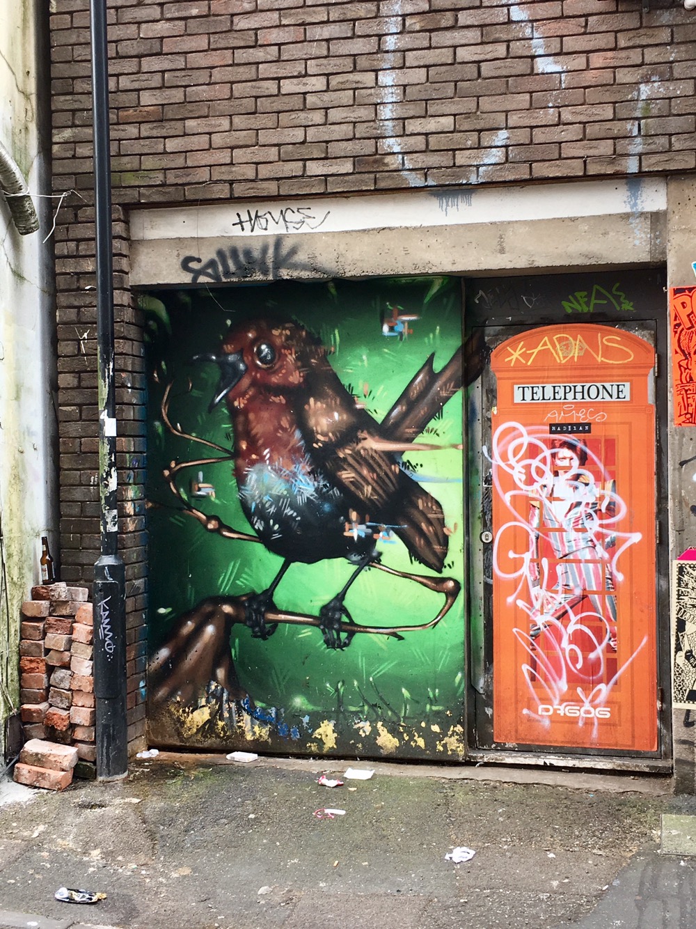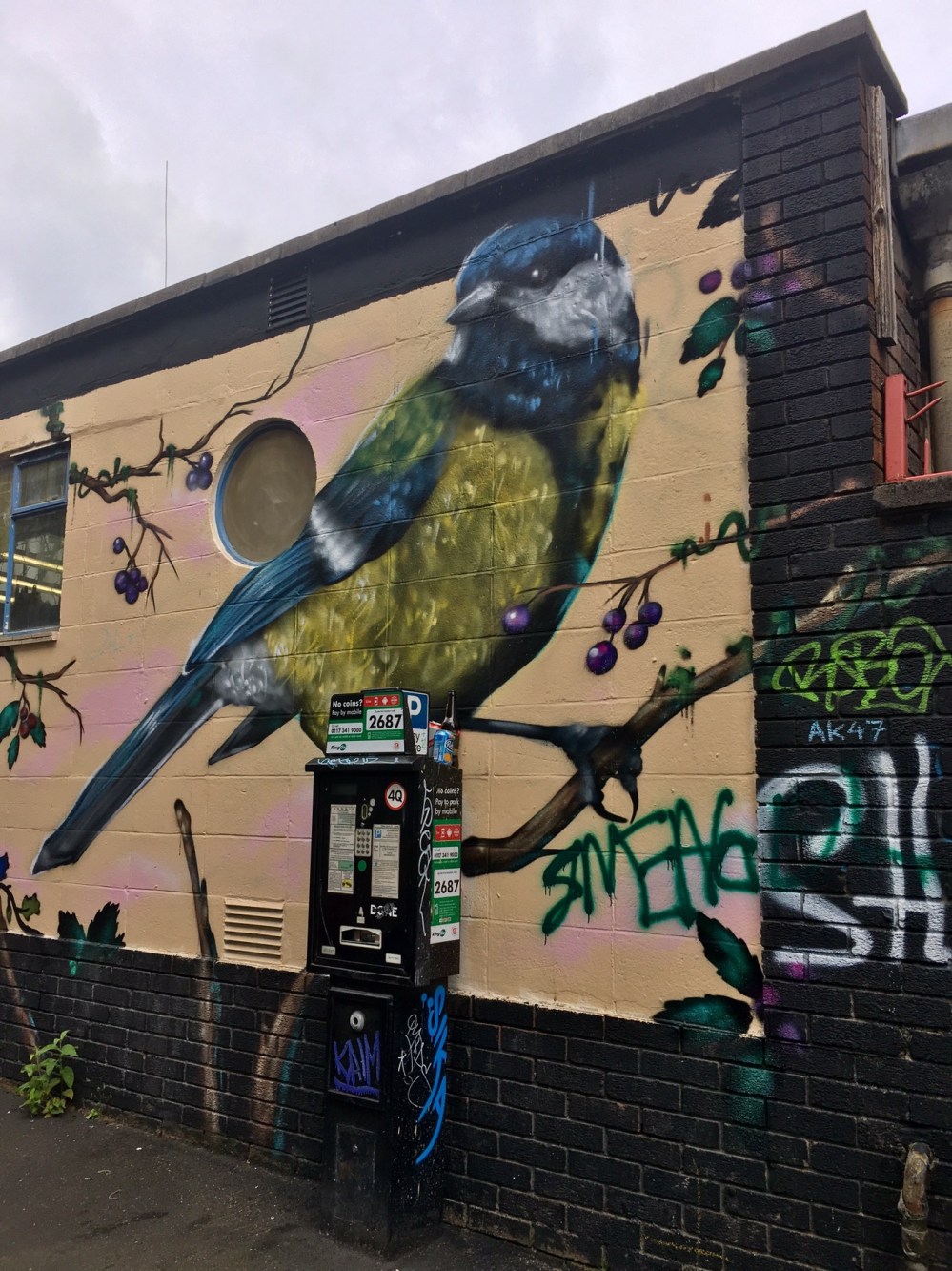 Superbes mésange et rouge-gorge (entre autres graffs) à Bristol. Et ce n’est pas n’importe quel mouton, c’est Shaun !
