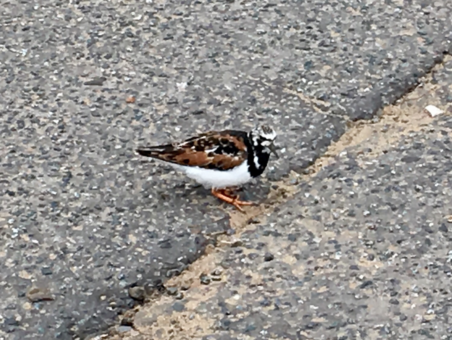 Oiseau 6 : tournepierre à collier avec son plumage nuptial. Comme son nom l’indique, il retourne les cailloux et fouille sous les algues pour y dénicher des bestioles. Nous l’avons observé à Broadstairs avec la famille Floc’h.