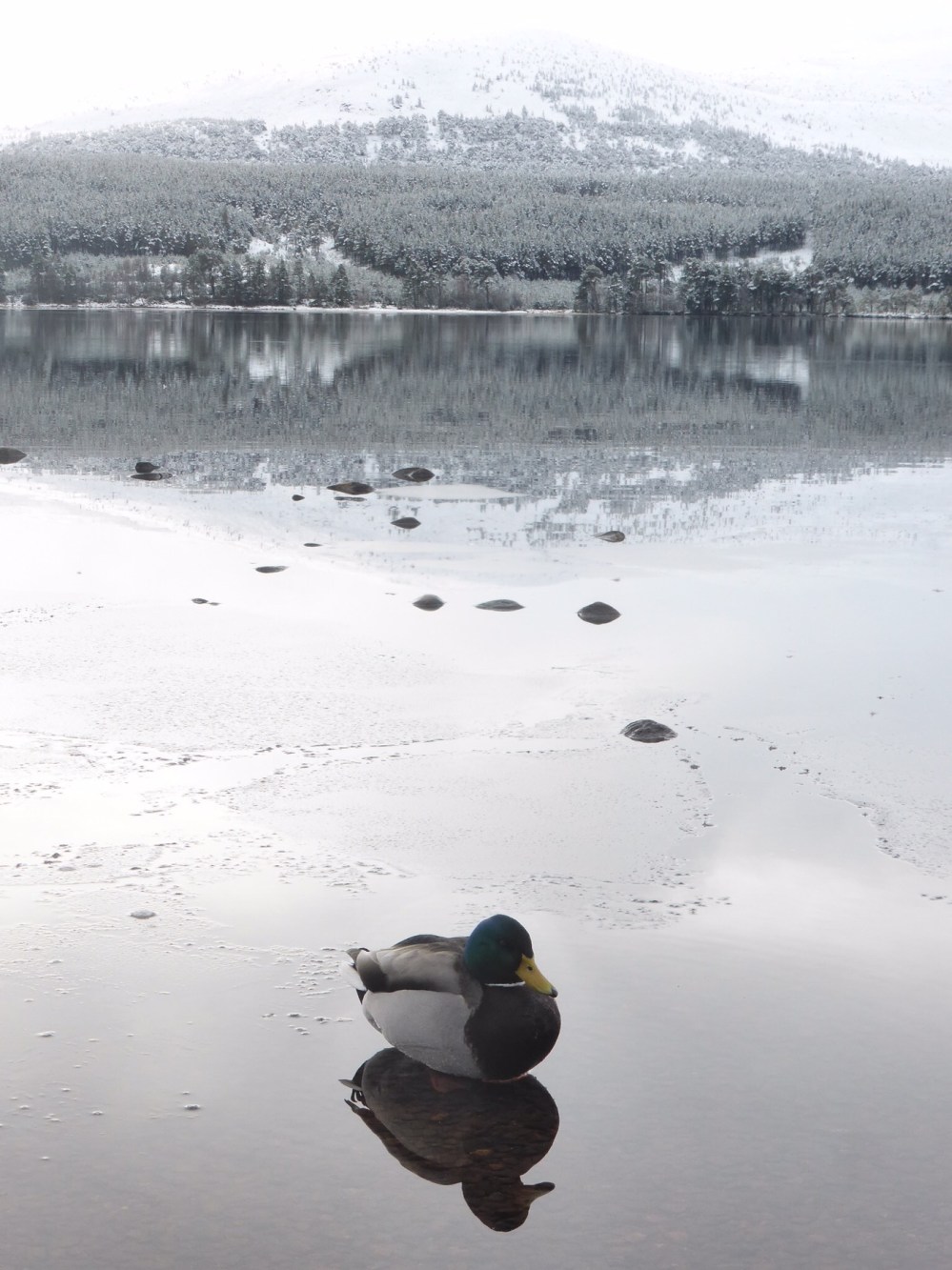 Belles observations ! Le grimpereau ne devait pas être facile à voir. Belle photo celle du colvert sur fond de colline enneigée.