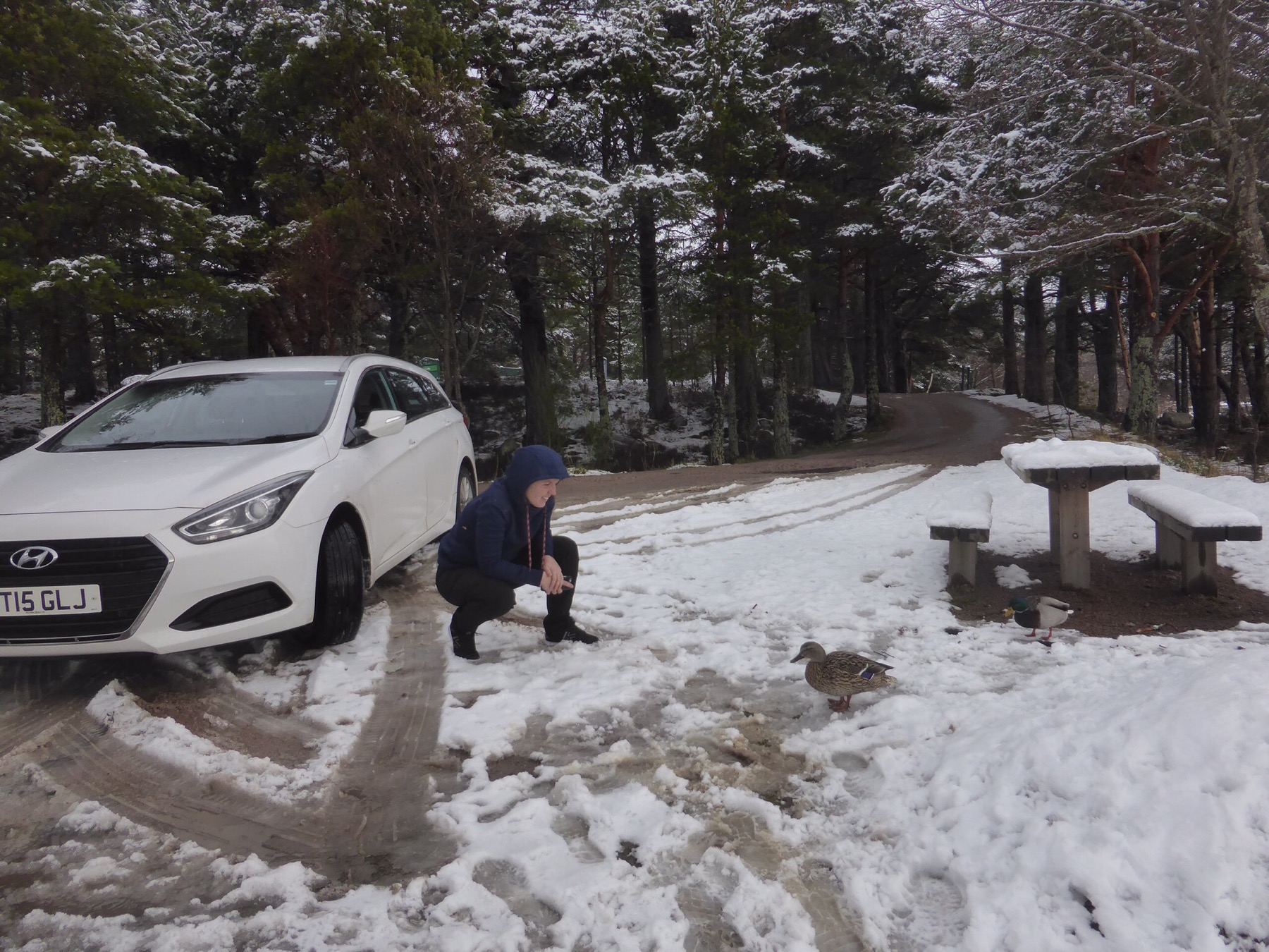 Oiseau 2 : petite rencontre dans les Cairngorms avec un couple de canards colvert très sympathique… Manue sous le charme a donc sorti le pain de mie strictement réservé au pique-nique. Pour information je me suis aperçu le weekend dernier que Martine (la maman de Manue) faisait la même chose avec les biscuits achetés pour le goûter à l’aéroport par Daniel (papa de Manue)… les biscuits ont fini aux mouettes…