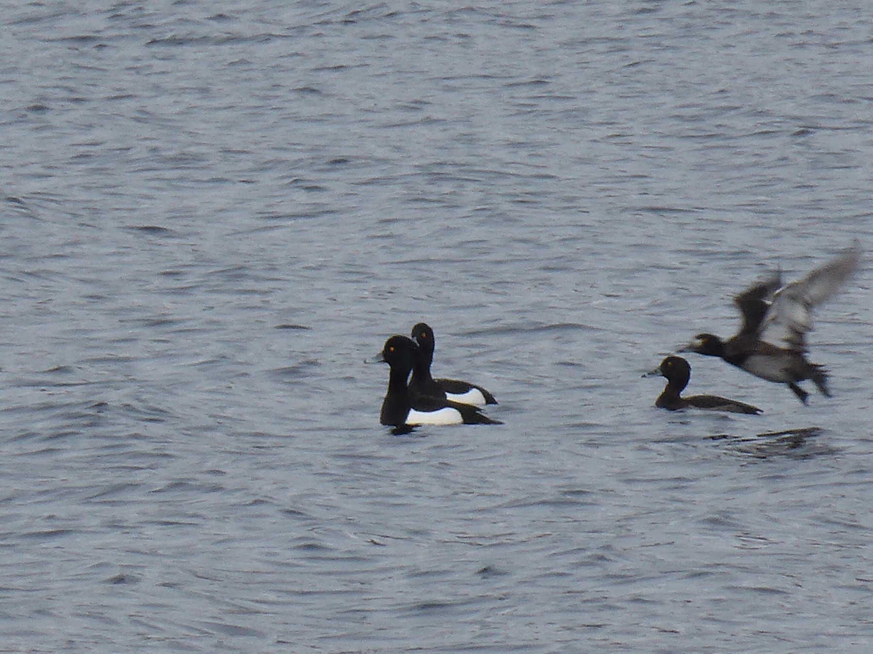 Oiseau 3 : voici des fuligules morillon pris en photo pendant la même randonnée que les canards. Ce sont d’excellents plongeurs qui aiment débusquer les mollusques.
