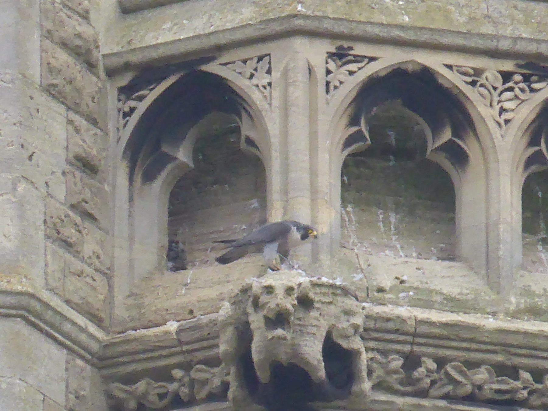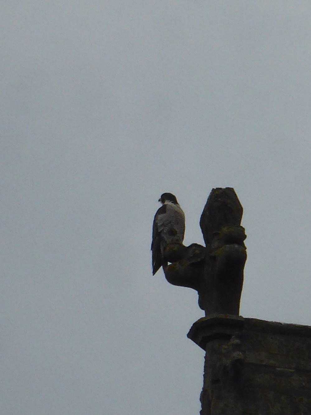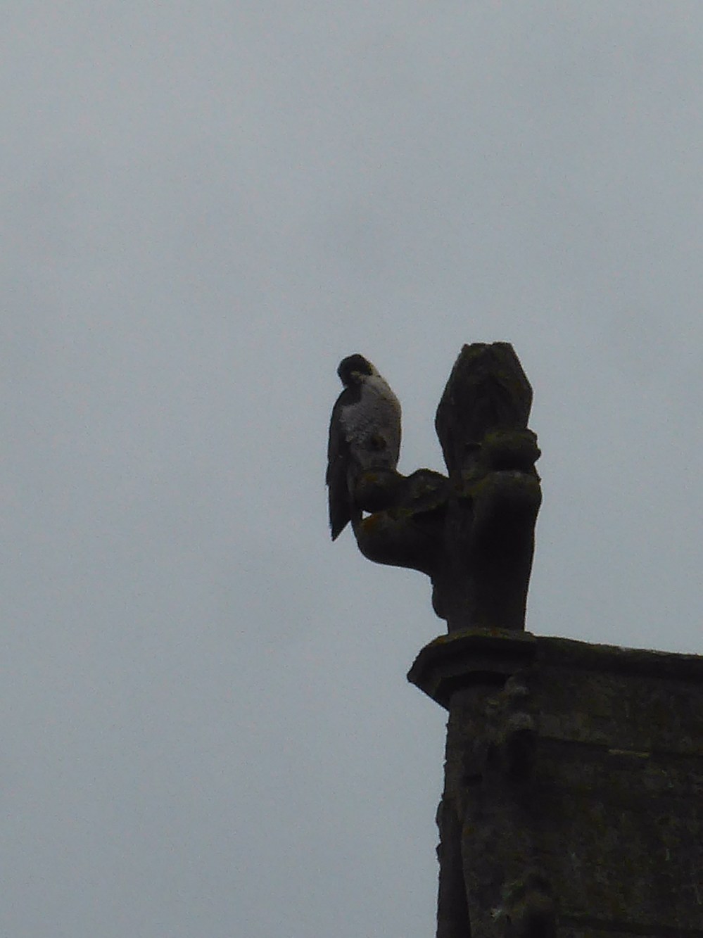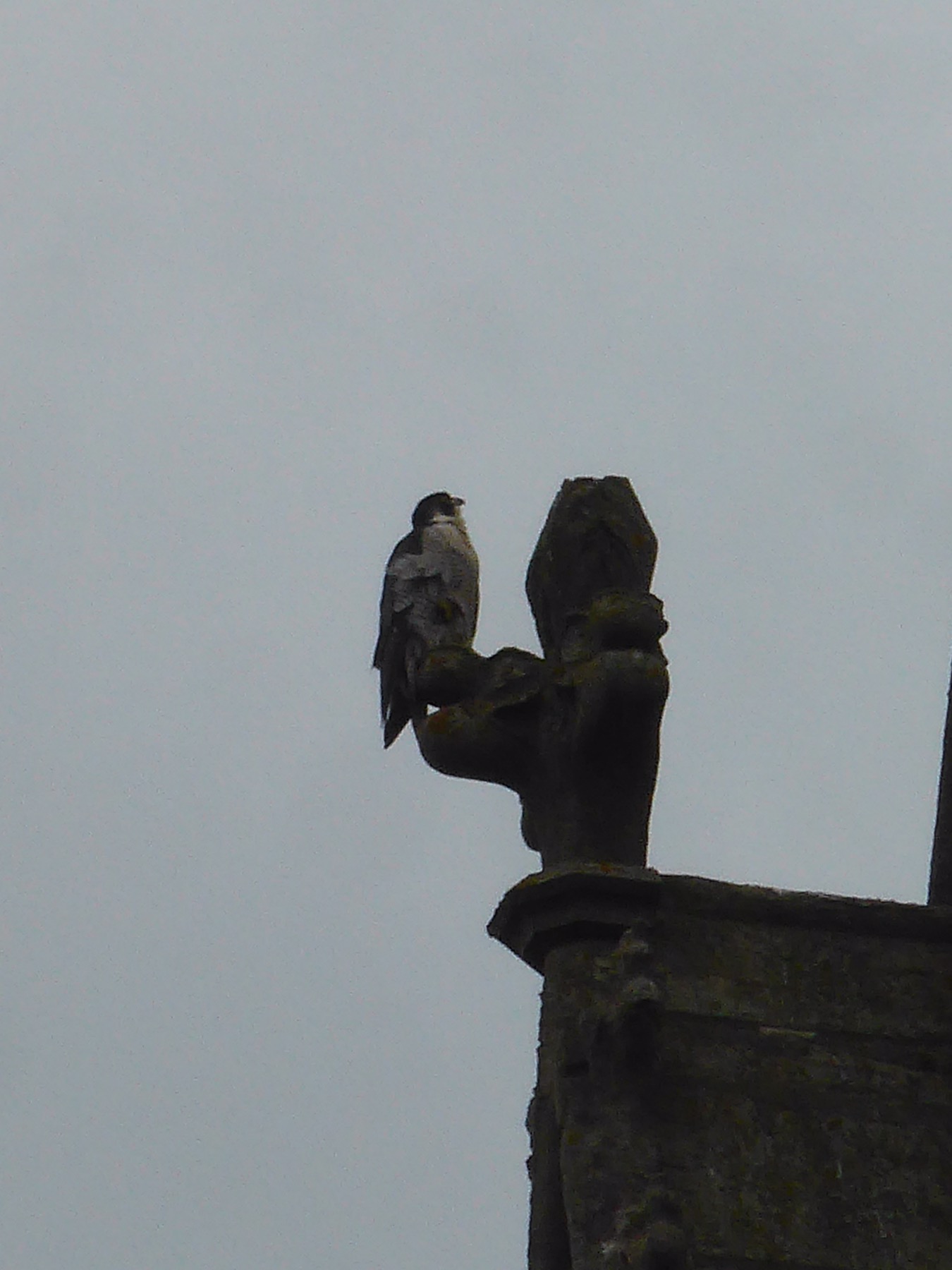 Voici leur nid. Les faucons pélerins s’occupent de préserver l’église des mouettes et autre oiseau qui serait susceptible de la dégrader. Et ça marche ! À la moindre approche, les faucons décollent et ça bagarre !