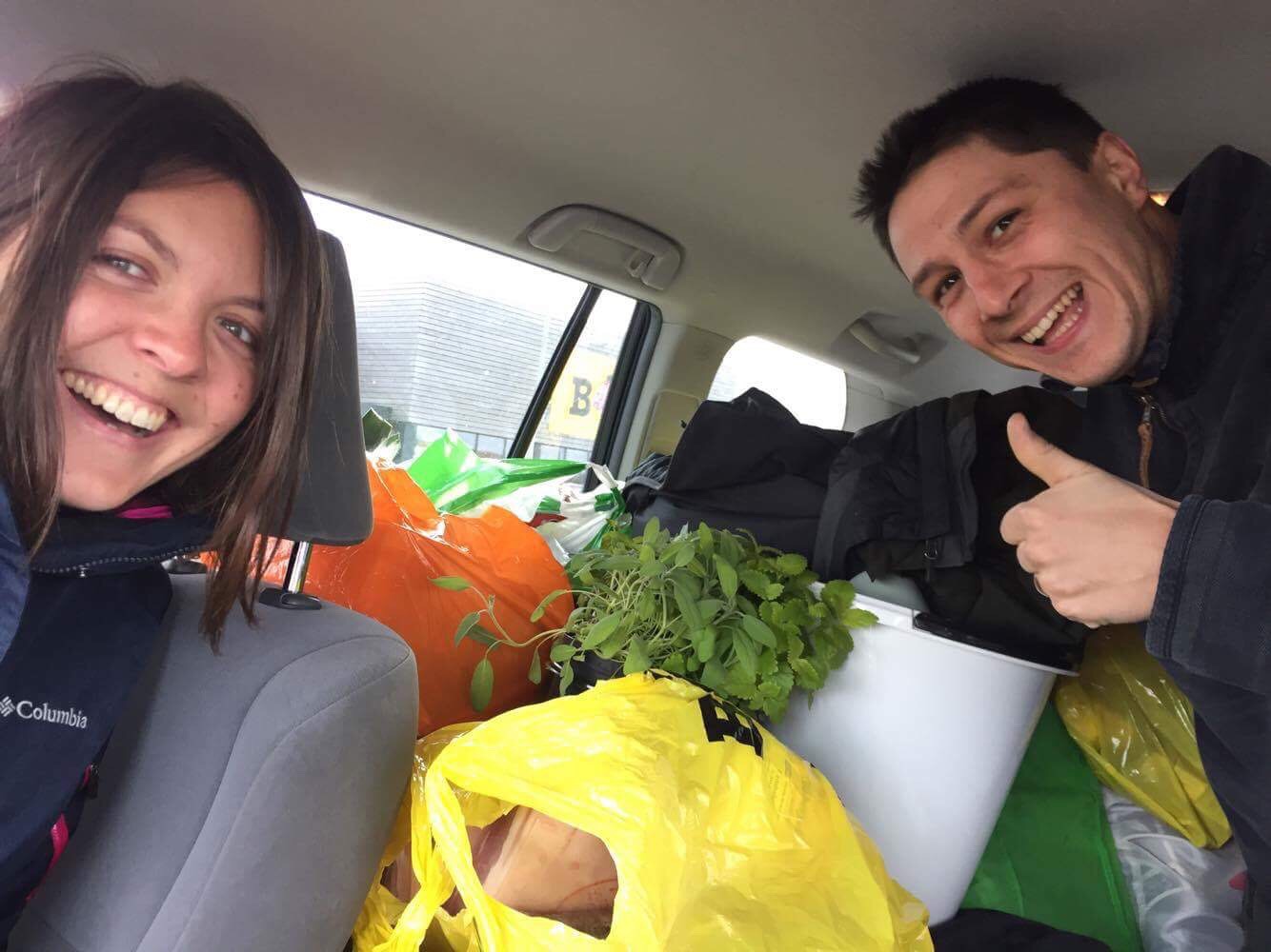 Nous nous organisons un peu tard pour faire des courses et réalisons que le Bonus local (supermarché discount) a fermé ses portes à 18h30 (heure de fermeture des magasins en général). Par chance, nous réussirons à acheter des pâtes et un bocal de sauce dans un café bio à côté.