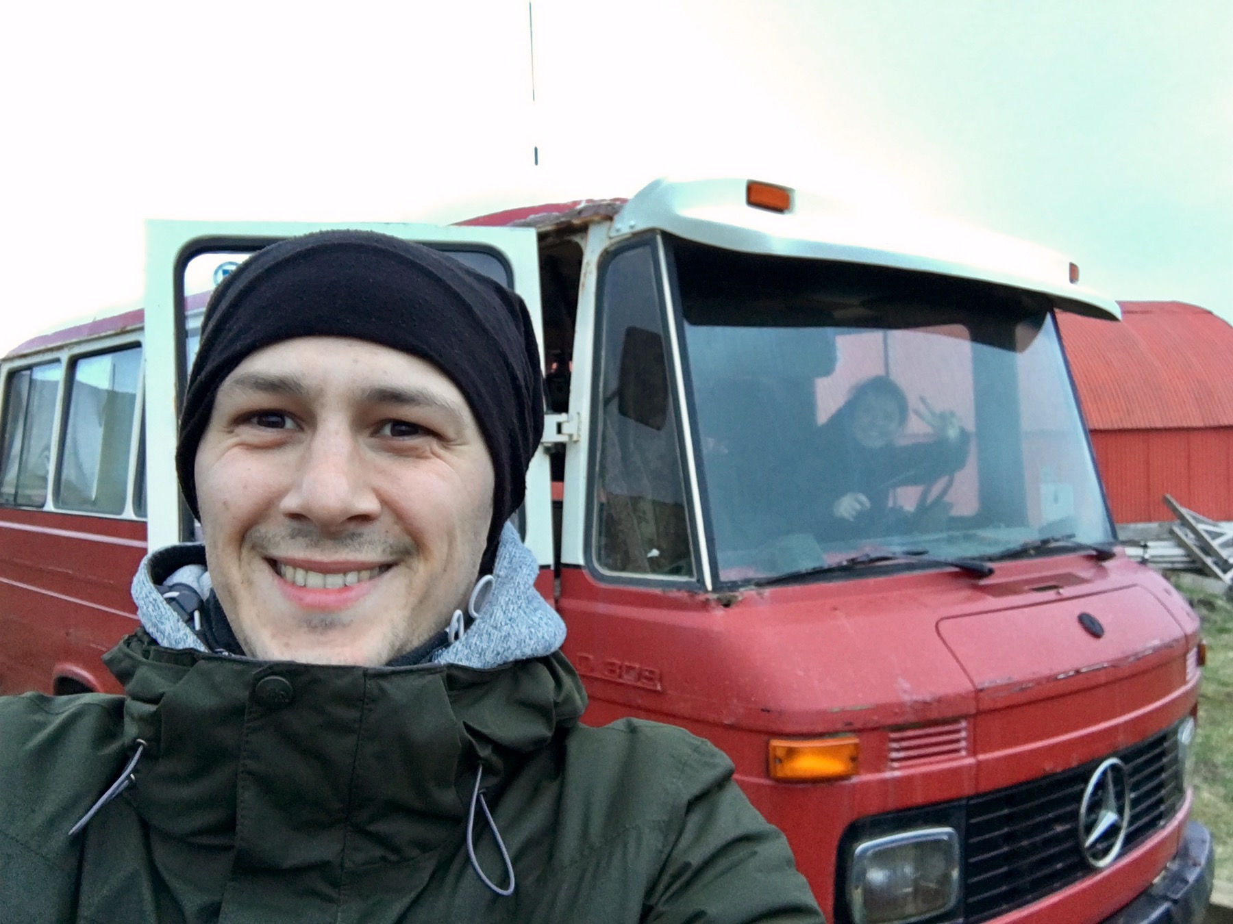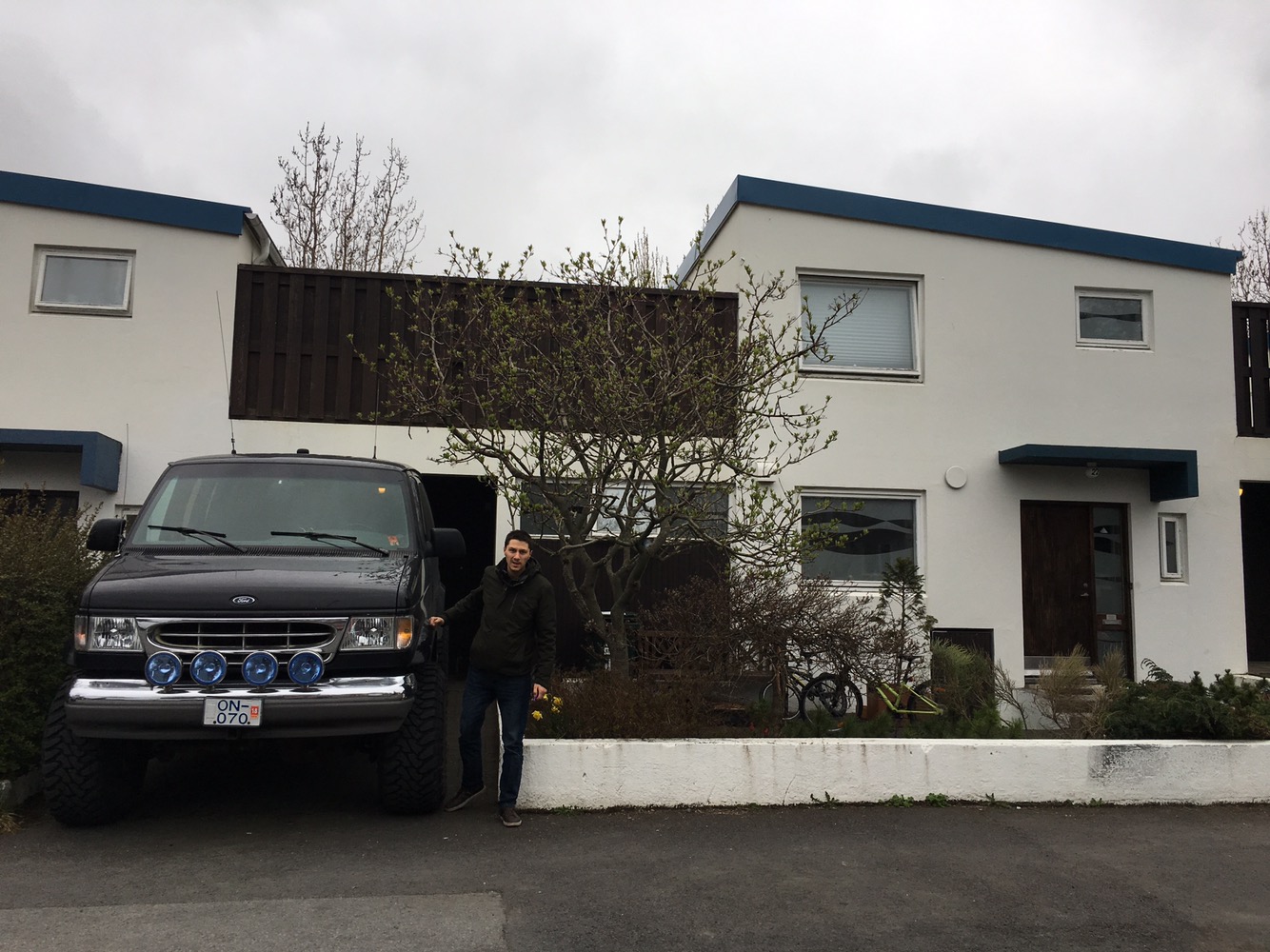 Nous y sommes ! Voici la maison principale d’Hadda et l’un des 4×4 de son mari qui organise des stages photos pour professionnels dans toute l’Islande ! Observez la taille des pneus ! Notez que les 4×4 sont légion dans ce pays où la plupart des routes sont en réalité des pistes uniquement accessibles avec ce type de véhicule. Les pneus cloutés sont aussi extrêmement présents.