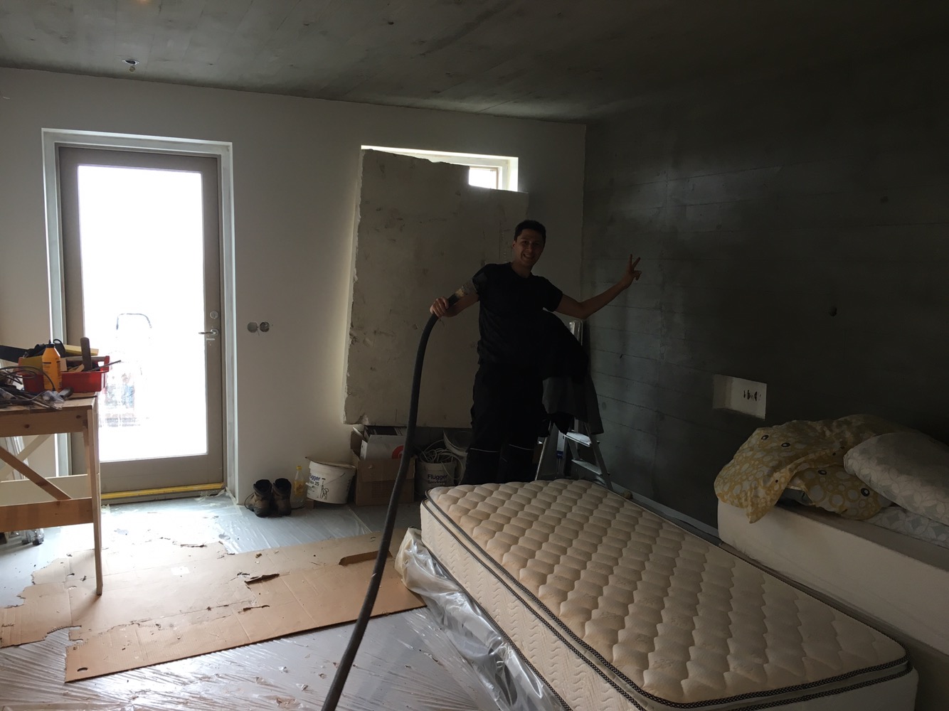 La Symon team en mission nettoyage de vitres pour parfaire la nouvelle chambre du jour !