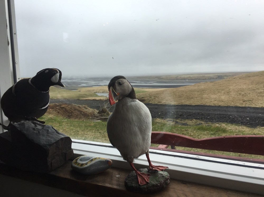 Que vous dire d’autre ? Nous rencontrons chaque jour des gens du monde entier, venus passer une nuit (ou plus, surtout quand les routes sont fermées !) dans cette contrée hostile perdue au milieu de nulle part. La guesthouse est située au bout d’une piste, à 7kms de la route 1, et appartient au village de Kirkjubæjarklaustur (on ne sait toujours pas comment le prononcer !). Tout le monde ici parle l’anglais, nous continuons donc de progresser chaque jour !