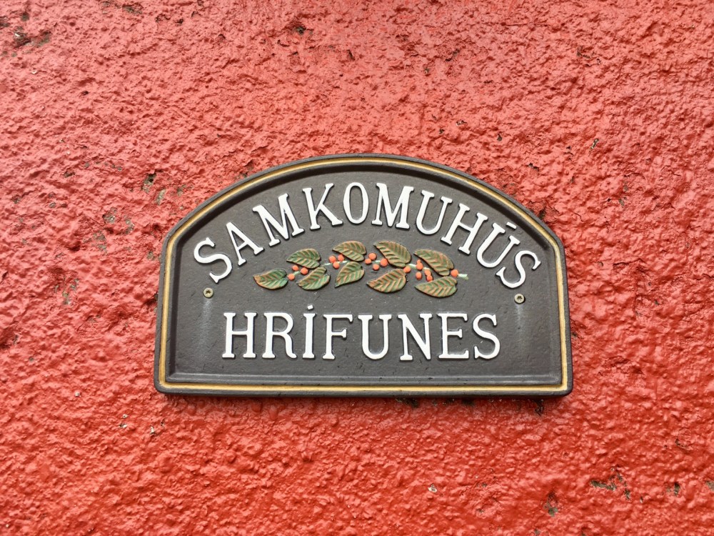 Notre pécule en poche, nous demandons conseil à une islandaise qui nous indique le bus à prendre pour rejoindre la maison d’Hadda. Devant l’arrêt de bus, ça se complique ! Rien que de l’islandais… Par déduction, on arrive à deviner de quel côté de la route prendre le bus. On demande aussi au chauffeur de nous arrêter au bon endroit qu’on lui pointe sur la carte… au cas où !