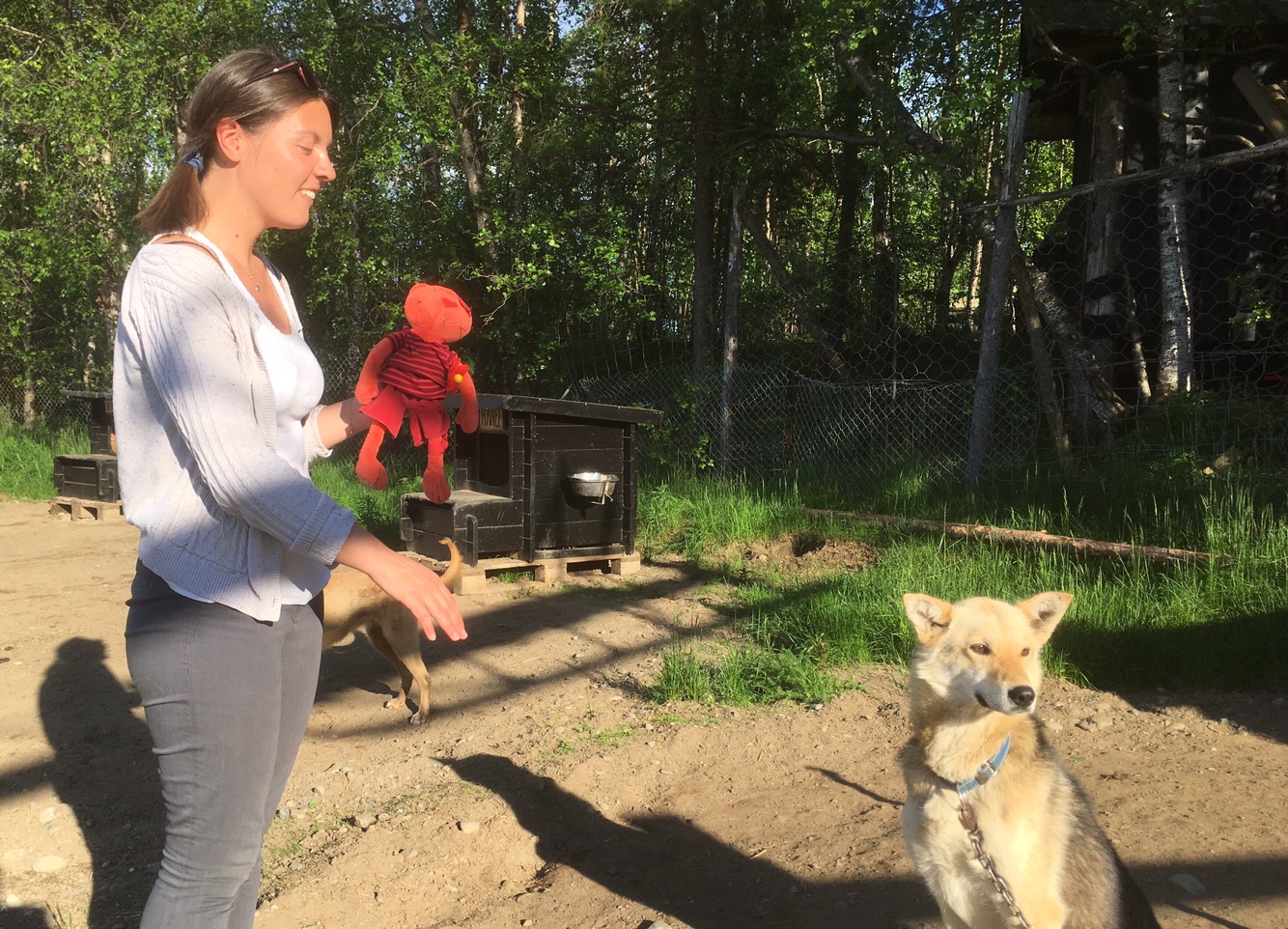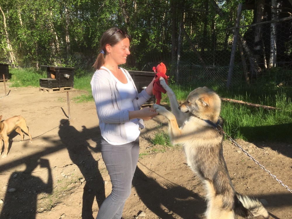 Voici Lilja, une des femelles les plus affectueuses du dogyard. Chaque matin, c’est gros câlin et léchouilles lorsqu’on vient lui dire bonjour. Par contre, pas question de l’emmener en balade ! C’est une leadeuse, ce qui veut dire qu’elle ne peut s’arrêter de tirer ! Elle est très puissante. Parfaite donc pour un tour à vélo ou en traineau mais pas pour la tranquille balade du dimanche 😉