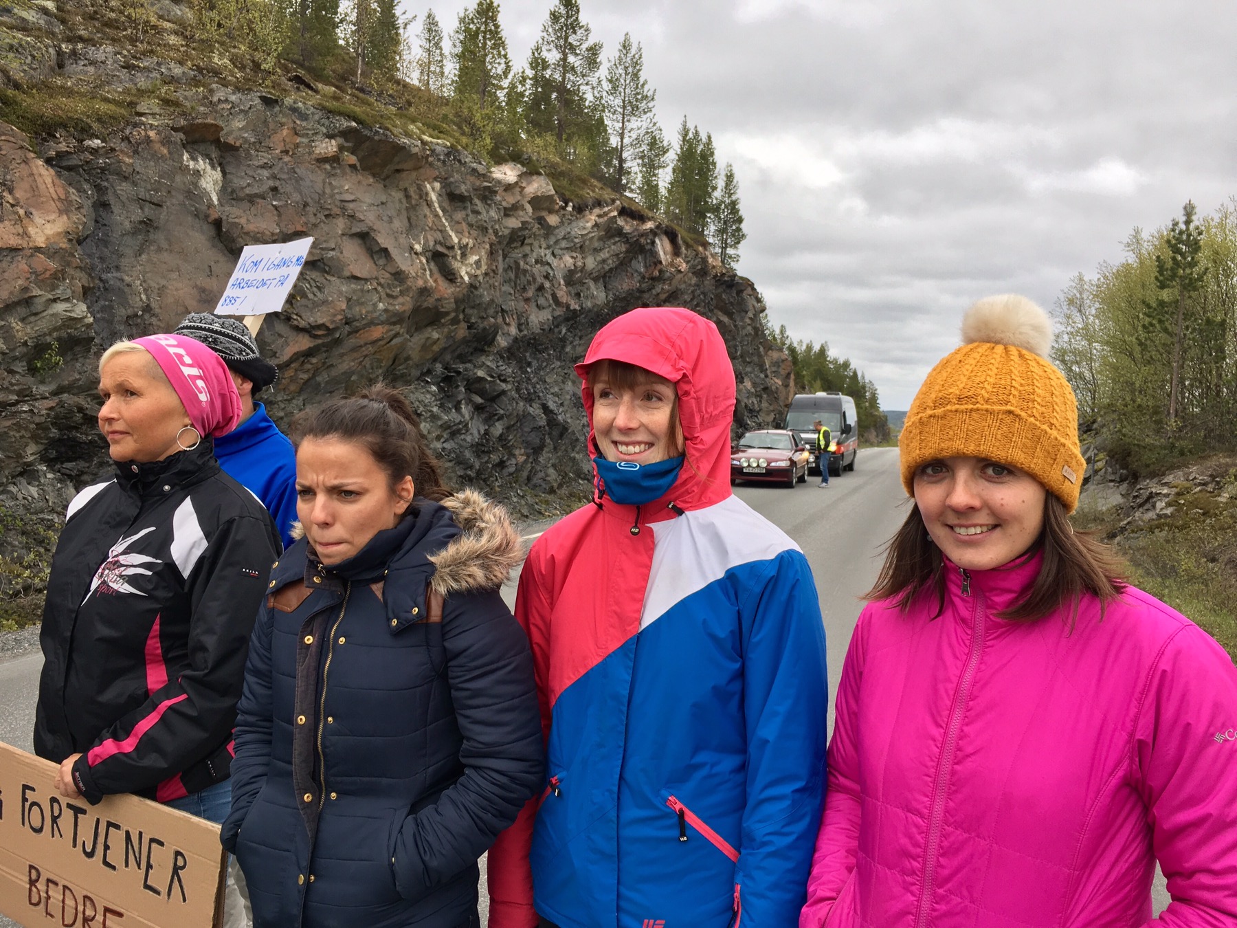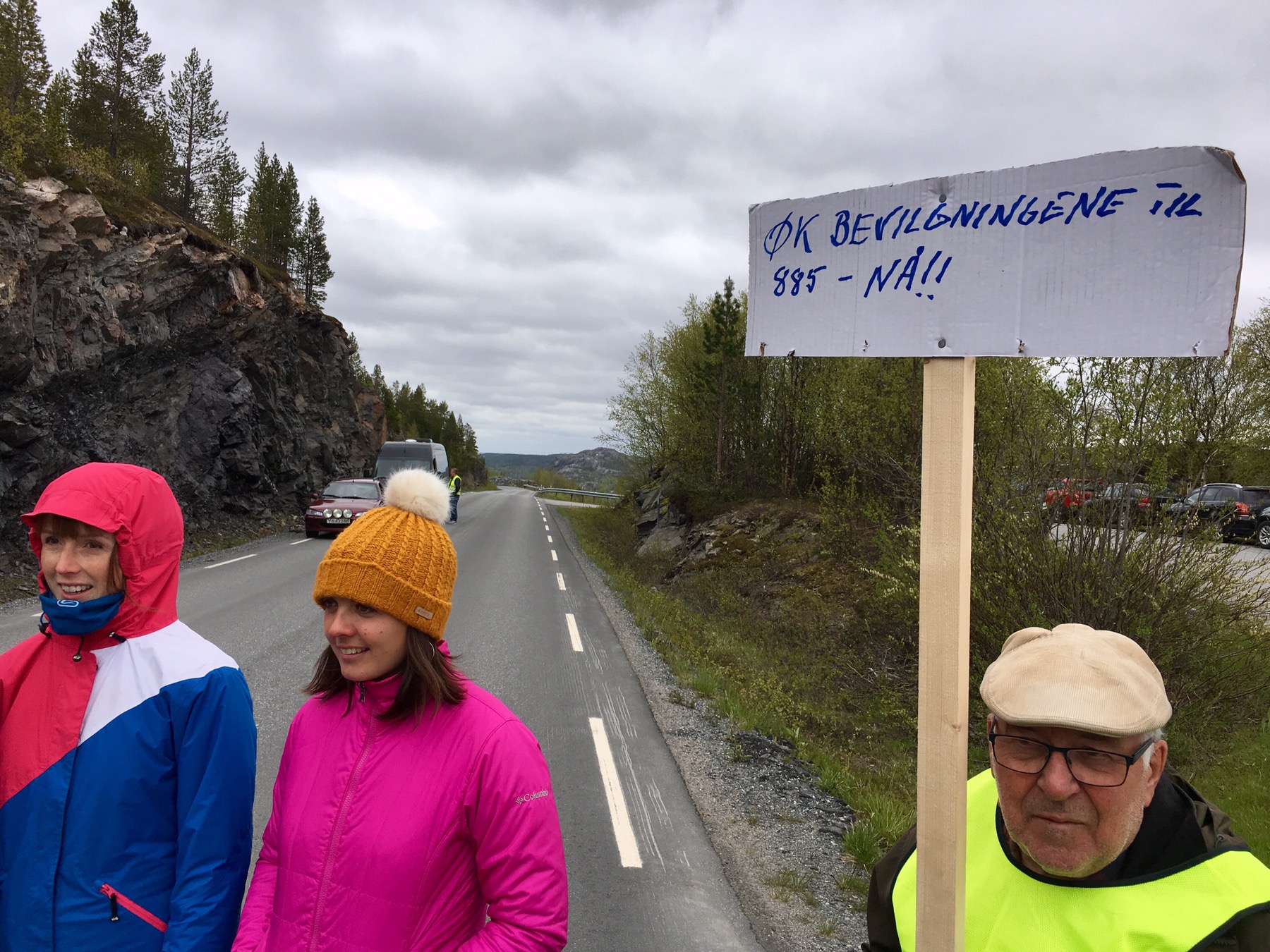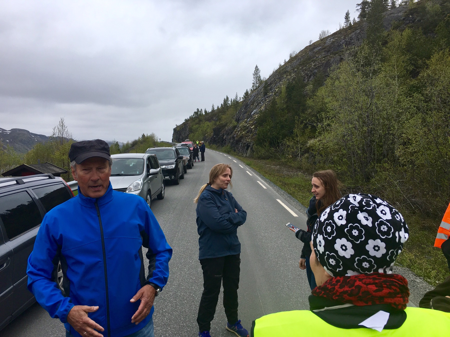 Trine, notre hôte, nous a demandé de l’accompagner pour soutenir la cause du coin : obtenir une meilleure route ! Bedre vei (meilleure route littéralement) ! Faut dire que c’était mieux d’arriver à 5 plutôt que toute seule pour compléter un groupe d’une vingtaine de personnes et… bloquer la route ! Du calme, du calme, on a dû bloquer 12 ou 13 voitures, tout au plus. On n’est pas en Bretagne ici !