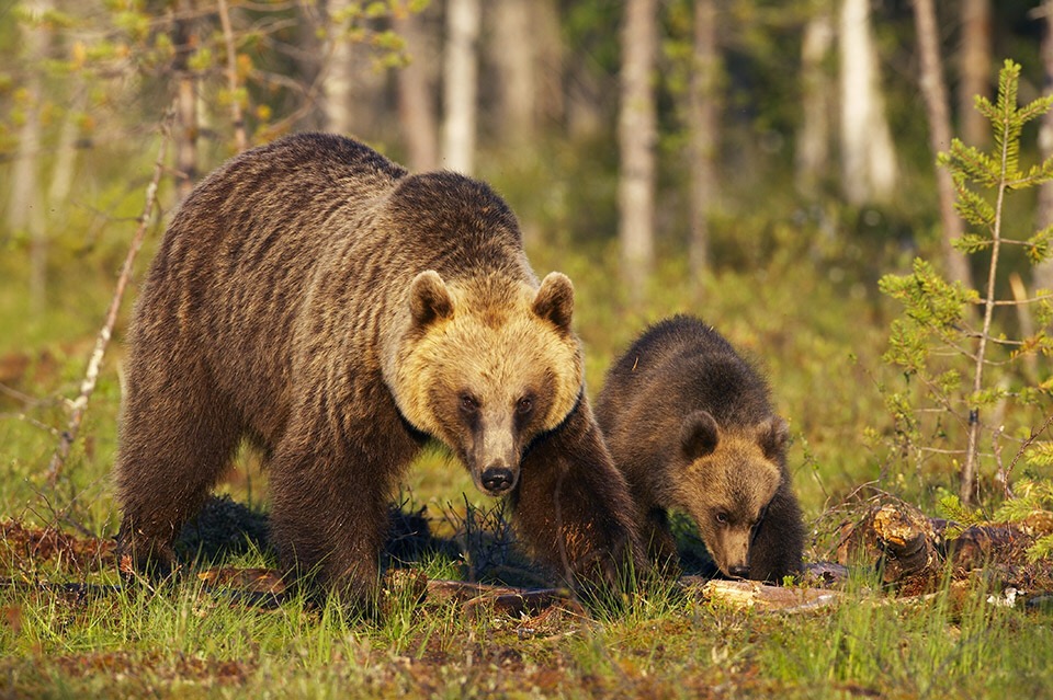 Nous avons appris que la femelle ours peut mettre au monde ses petits pendant son hibernation et les allaiter pendant son sommeil, depuis son trou. Elle n’en sait alors rien et découvre ses petits lorsqu’elle se réveille. C’est ce qui est arrivé près de BIRK il y a quelques années. Seulement, l’ours avait fait son terrier derrière une habitation à l’orée d’un bois. En plein hiver, le propriétaire faisait une balade lorsqu’il remarqua un tas de terre anormal sur son terrain. Il pris alors une pelle pour voir ce qui se trouvait en dessous. C’est alors que l’ours s’est réveillée et a surgi du trou. Imaginez la scène ! Elle a pris peur et s’est enfuie… laissant deux oursons qu’elle avait fait naître sans le savoir dans son terrier. Le fermier a alors récupéré les deux petits et immédiatement alerté les militaires et l’association du parc national. Pendant des jours, des battues ont été organisées pour tenter de retrouver la maman ours. En vain. Les deux oursons, trop fragiles et ne pouvant survivre sans le lait maternel ont fini par mourir. Ils ont alors été envoyés chez un taxidermiste et sont aujourd’hui exposés au musée de Svanvik (photo ci-après).