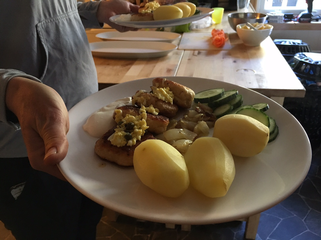 Autre recette traditionnelle : elgkarbonader, le steak d’élan. Autrement appelé moose burger pour les touristes. L’élan est présent partout ici et nous avons la chance d’en voir régulièrement près de la guesthouse. Le goût de sa viande est moins prononcé que celle du renne et un peu plus tendre.