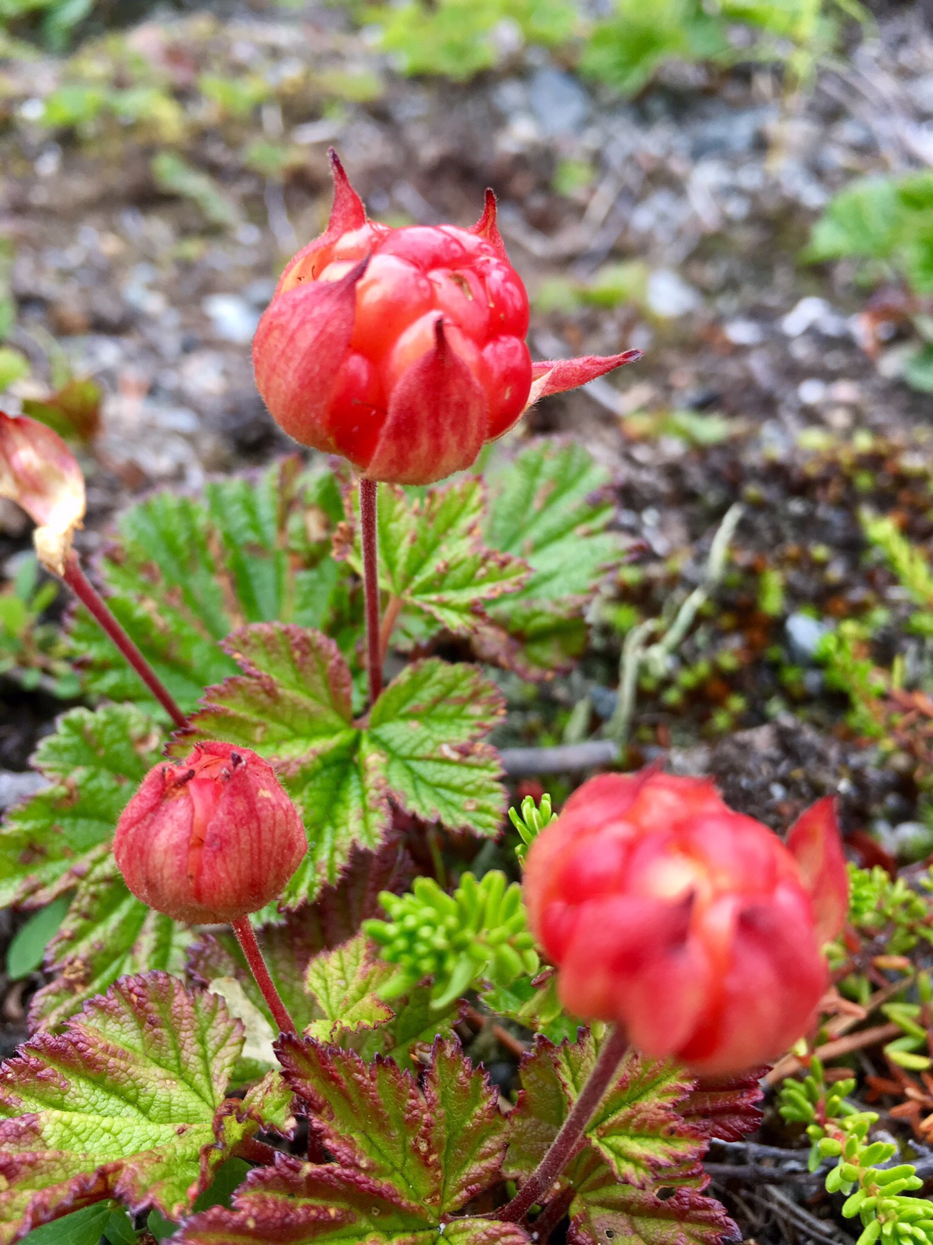 Les mûres arctiques ne sont pas les seuls fruits à pousser sous nos latitudes… 70 degrés Nord. Nous attendons avec impatience les baies de fin d’été pour goûter confitures de baies de rosier, de sorbier, arbusier, genévrier… Framboises et fraises devraient aussi être bientôt au rdv (et oui il neige jusqu’à fin mai ici alors les fruits se font désirer !).