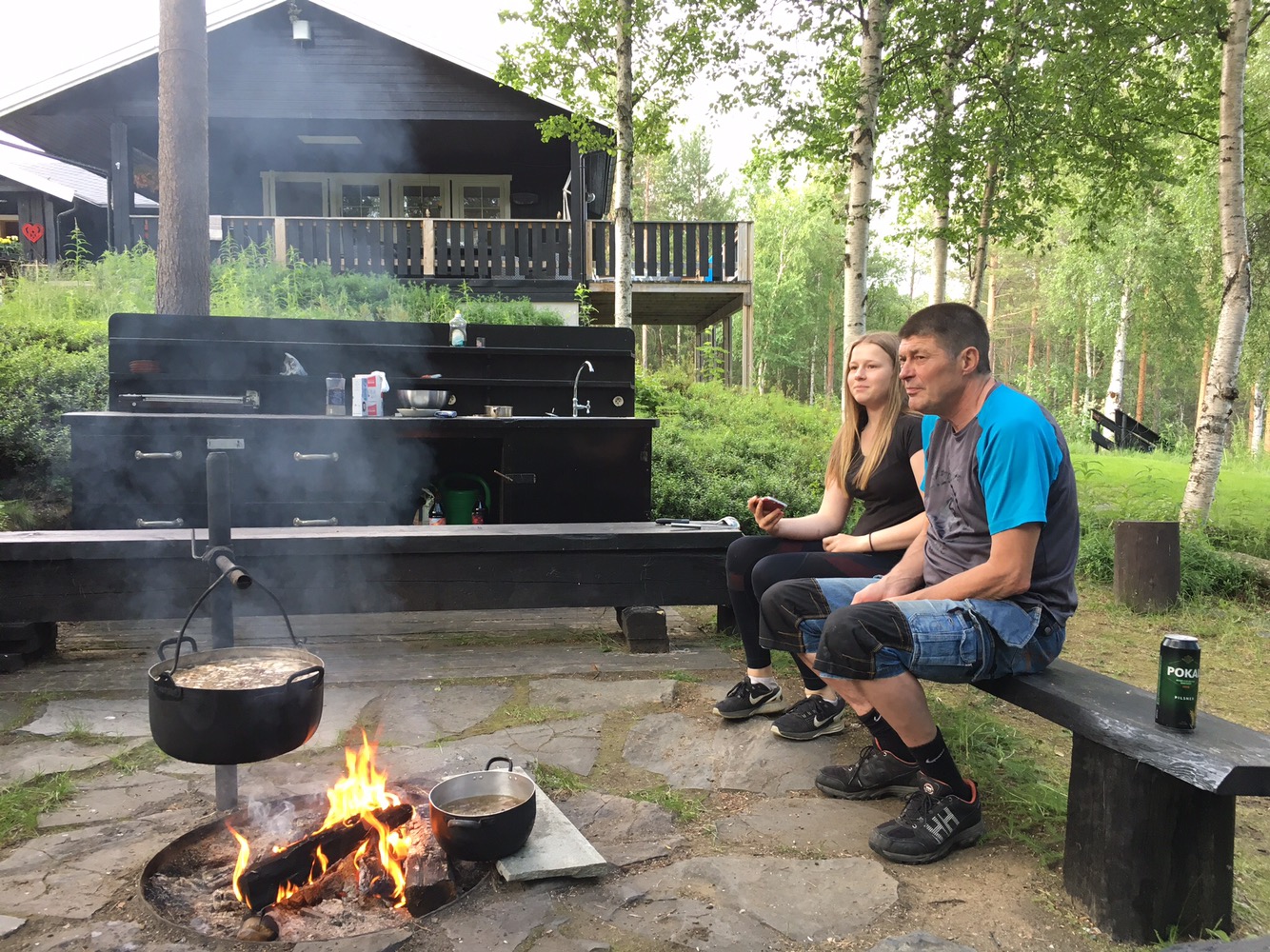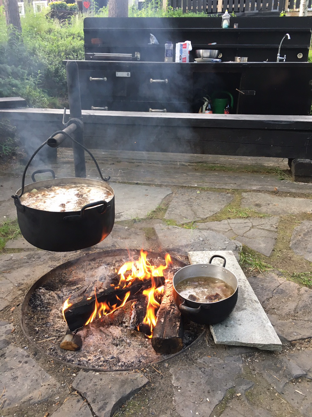 Il est aussi possible de déguster de la soupe de renne. Celle servie aux clients ne comprend que des morceaux de viande sans os. Nous avons eu la chance de déguster avec nos hôtes la « vraie soupe de renne », celle avec les os dont il faut aspirer la moelle (Simon adoooooore !). Elle cuit au-dessus du feu de bois pendant plusieurs heures avant d’être servie, à toute la famille et les voisins invités pour l’occasion.