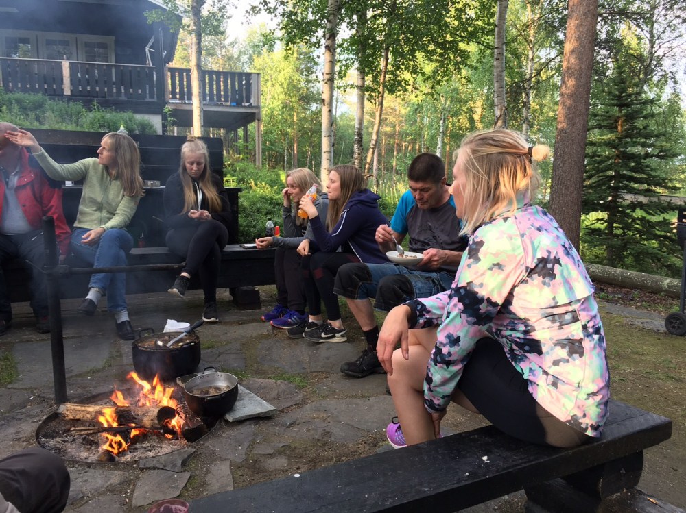 Ici donc il faut apprendre à s’occuper et se divertir autrement. Vous l’avez vu dans un précédent article, la course en chiens de traineau fait partie des hobbies du coin. Sofie programme son inscription pour 2018 au 300kms. Runa, la cadette, préfère le monde des chevaux et enchaine les compétitions (qu’elle remporte !). Pour se détendre le soir, elles vont pêcher à la rivière. Je ne crois pas que cette idée m’aurait traverser l’esprit quand j’étais ado… Comme si ça ne suffisait pas, elles se baignent chaque soir dans l’eau fraîche (très fraîche !) de cette même rivière. Pour la forme ! J’avoue que j’y ai aussi pris goût mais seulement si le sauna est allumé !