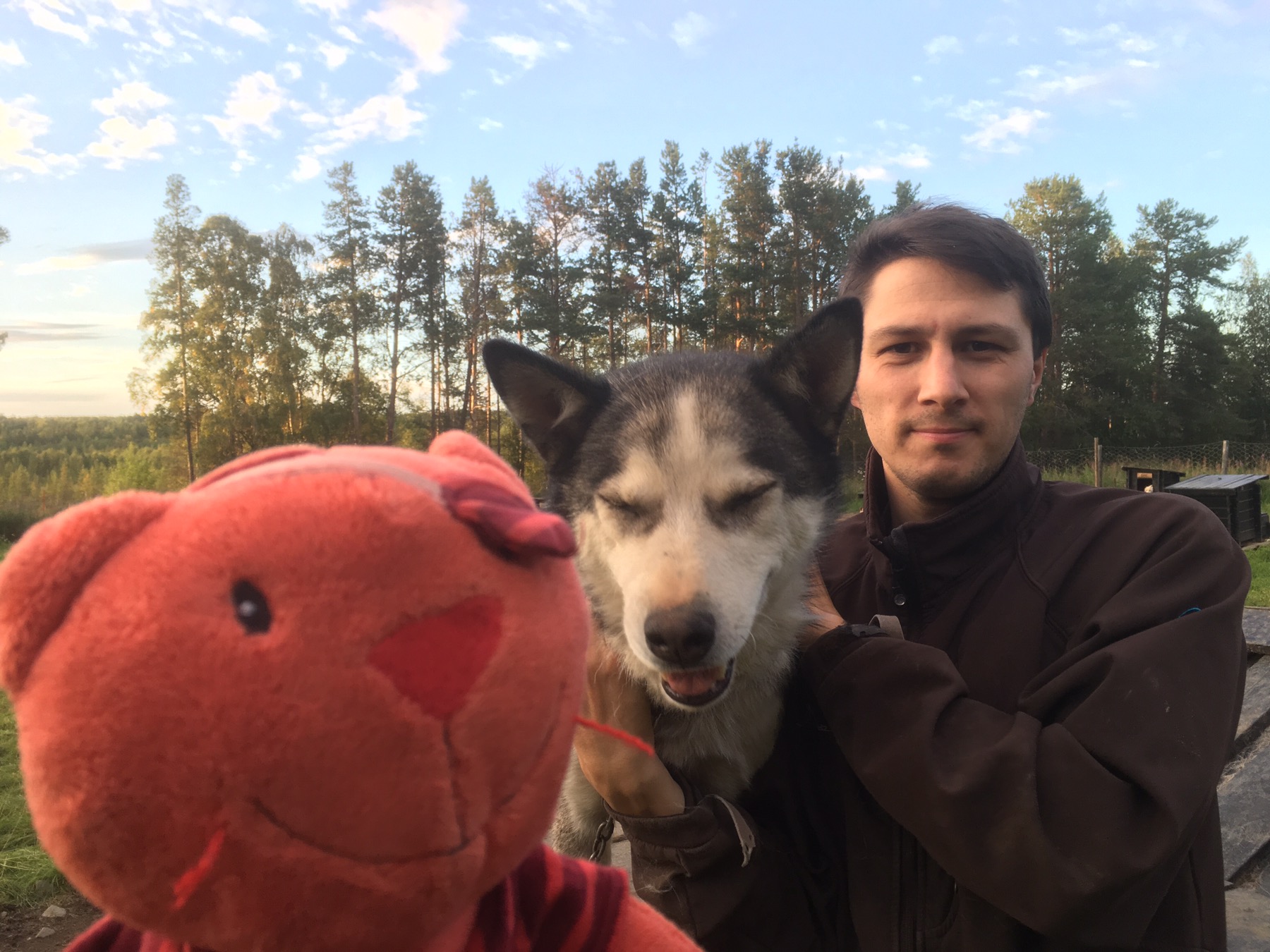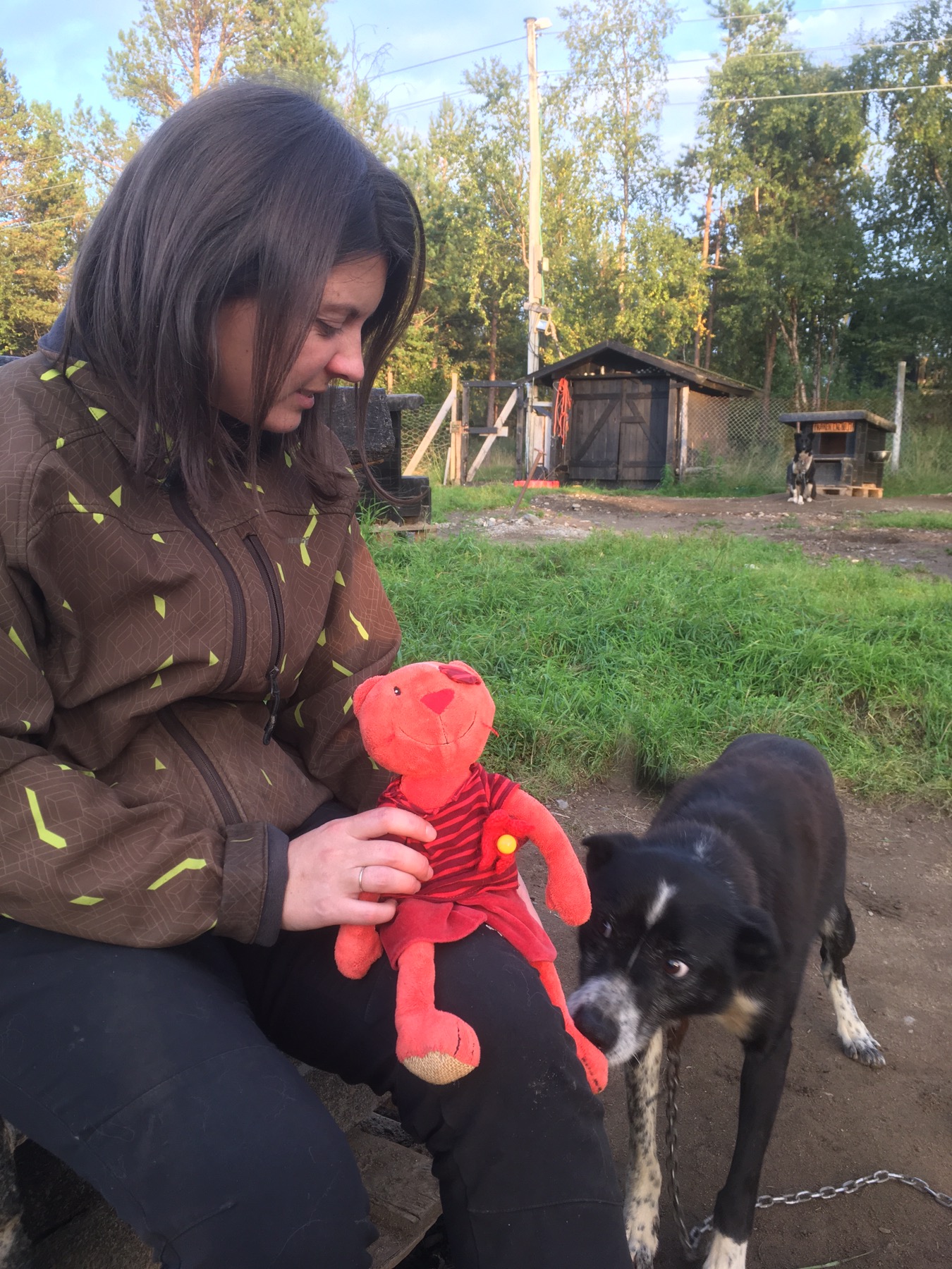 Onni, la grosse comédie (comme dit Manue !). C’est un de mes chiens préférés. Il réclame des câlins toute la journée en se jetant par terre dès qu’il nous aperçoit. C’est le plus vieux mâle du chenil, il a 12ans.