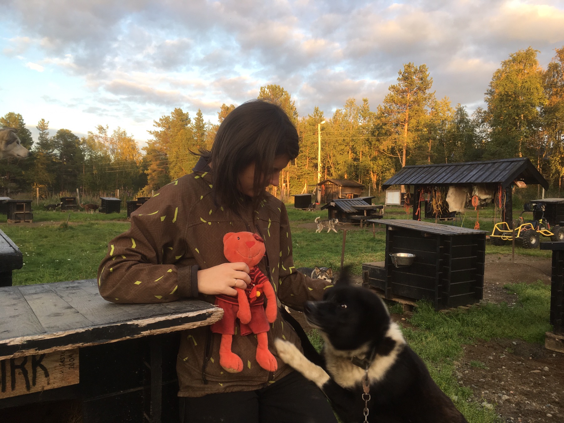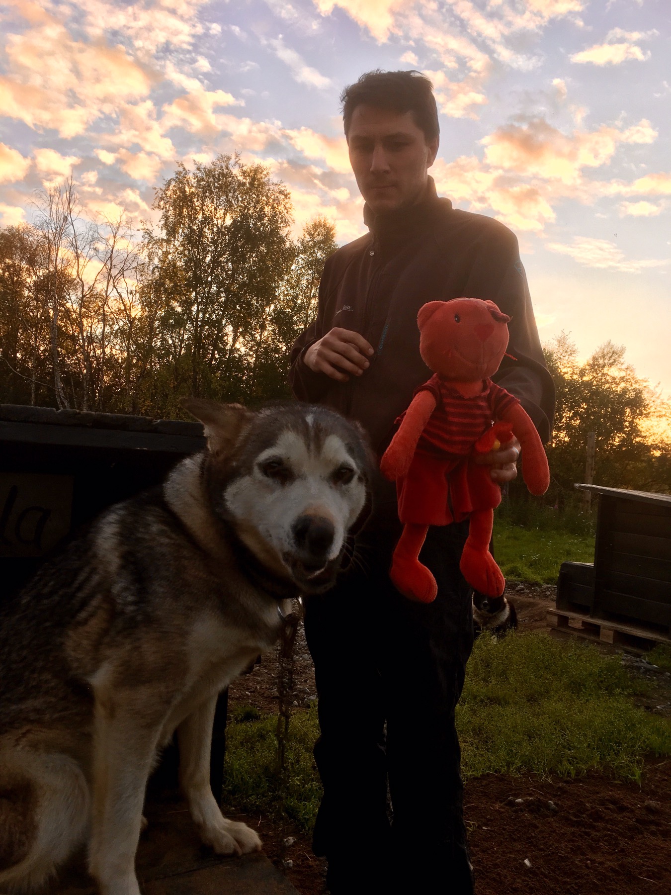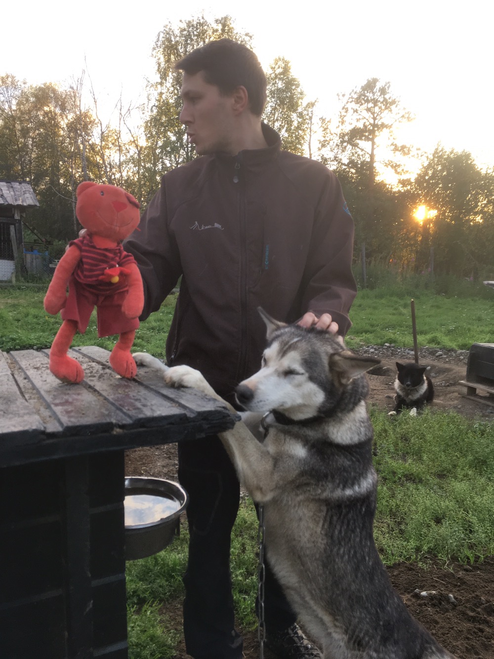 Roald, complètement excité, frère de Liv, Helge, Fritjof, Cecilie et Randi (une fratrie d’excités en fait !). Il s’est échappé de nombreuses fois cet été et Simon a dû bricoler sa chaîne pour qu’il cesse de s’enfuir (et nous réveiller à 4h du matin pour aller le ramener aussi…)