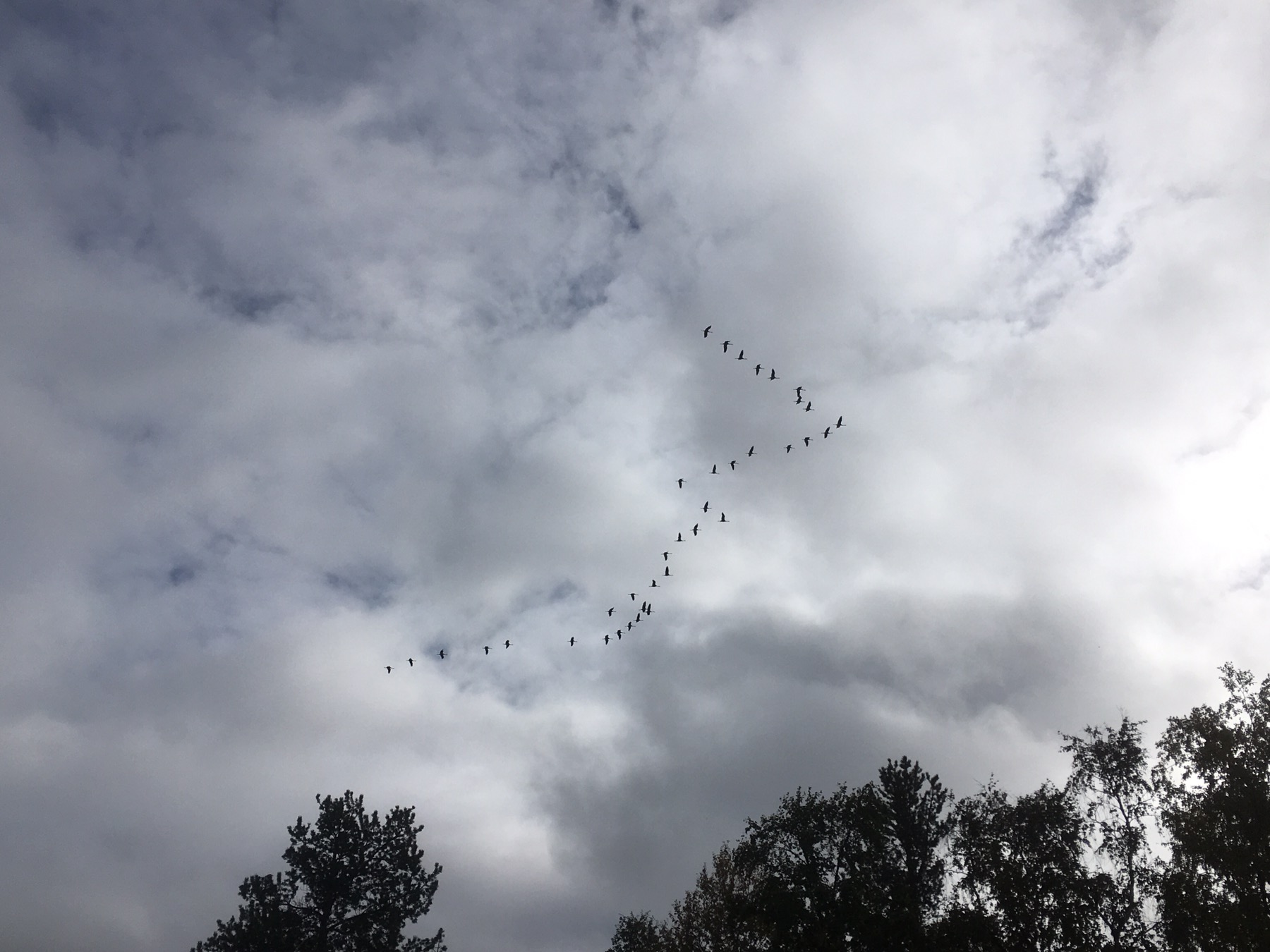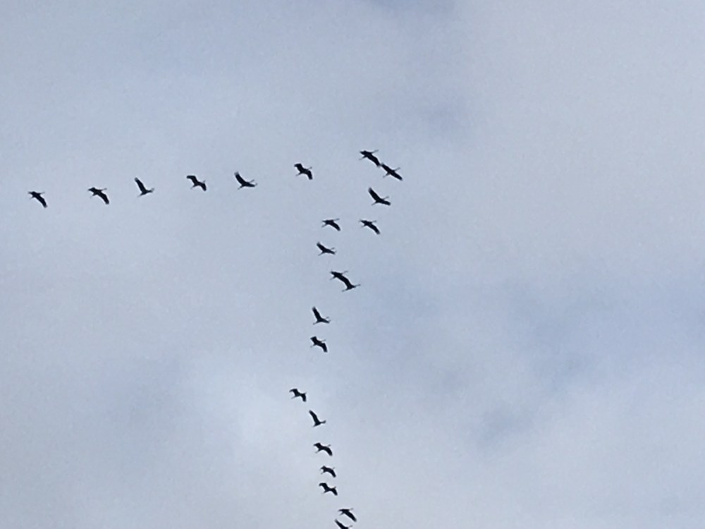 À la fin du mois d’août, les grues cendrées ont élu domicile dans la région. Il est impressionnant de les voir voler en formation groupée tout en poussant leurs cris claironnants.