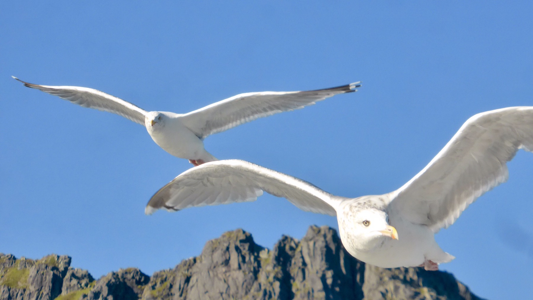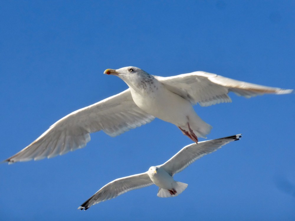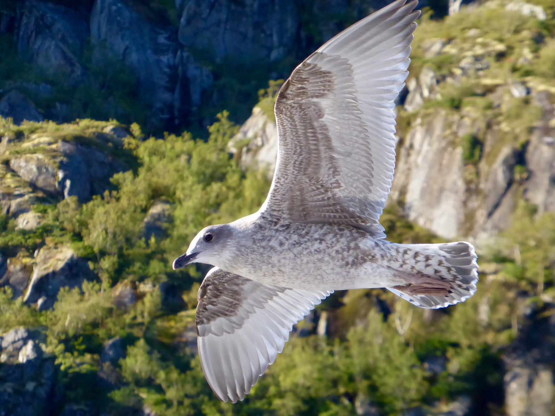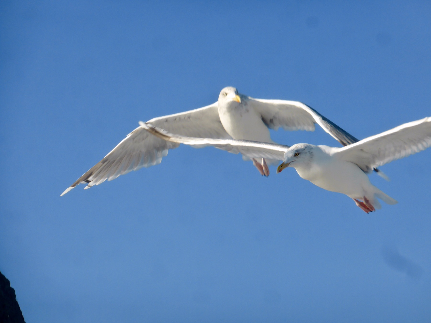 Nous commençons la navigation en la compagnie de goélands argentés, jeunes et adultes.