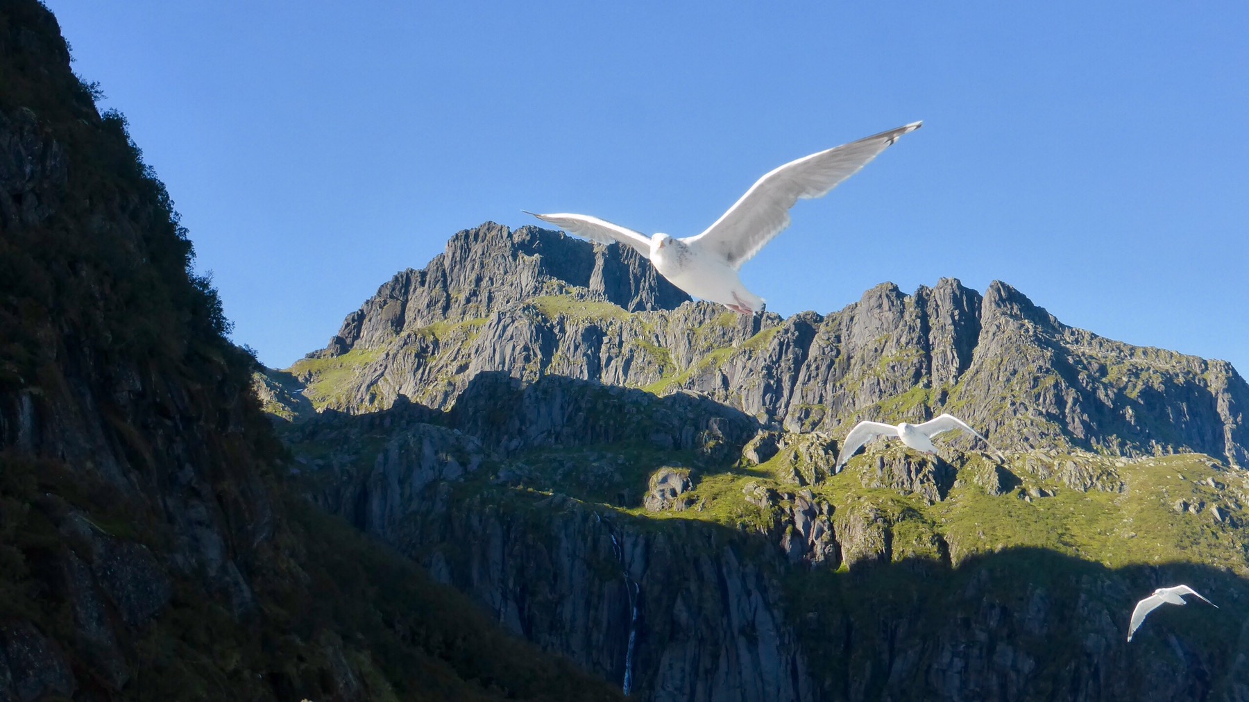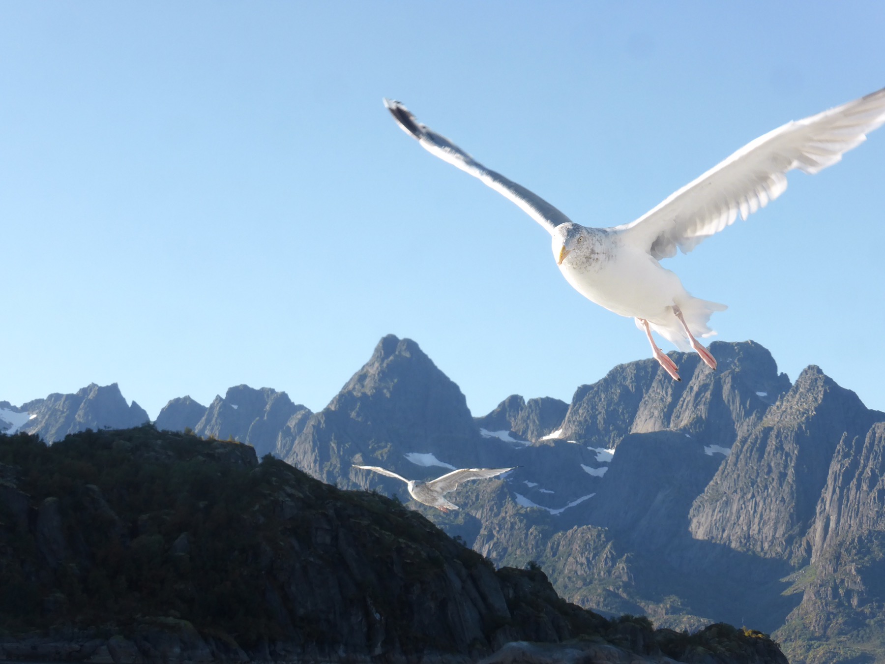Mais ce qui va suivre est bien plus palpitant ! Lors de notre passage dans la région du Trollfjord et la région de Svolvaer, près des Lofoten, nous avons pris un petit bateau afin de visiter les fjords étroits dans lesquels la roche tombe à pic dans la mer. Les paysages sont grandioses et les rapaces nombreux à ce qu’on dit !