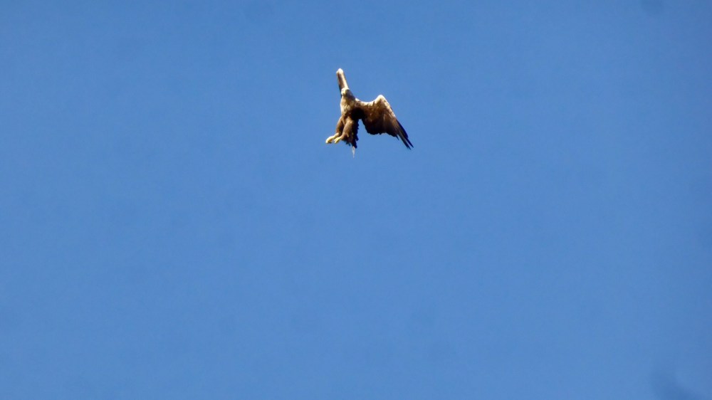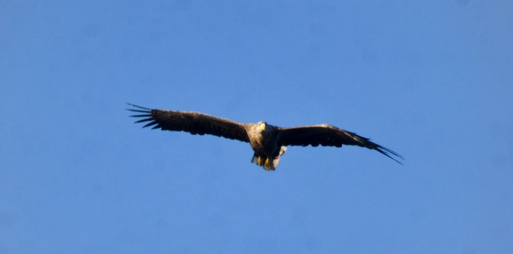 Voici pour les photos ! Le pygargue peut atteindre une envergure de 2,45m ! Il est sédentaire et construit son nid au sommet des arbres. Ce nid peut mesurer jusqu’à un mètre de diamètre et est réutilisé plusieurs années de suite. Le pygargue à queue blanche se reproduit à partir de l’âge de 4 ans.