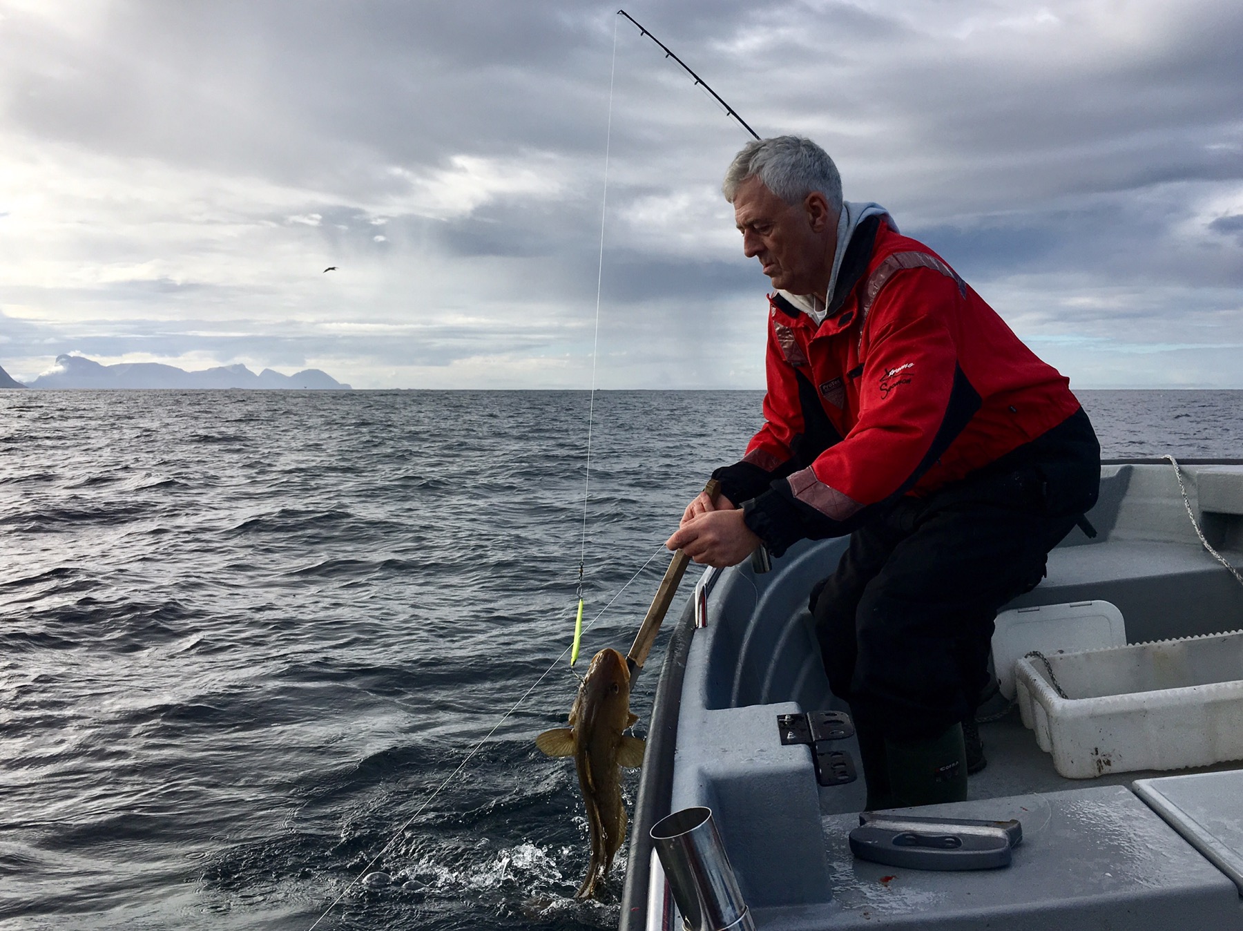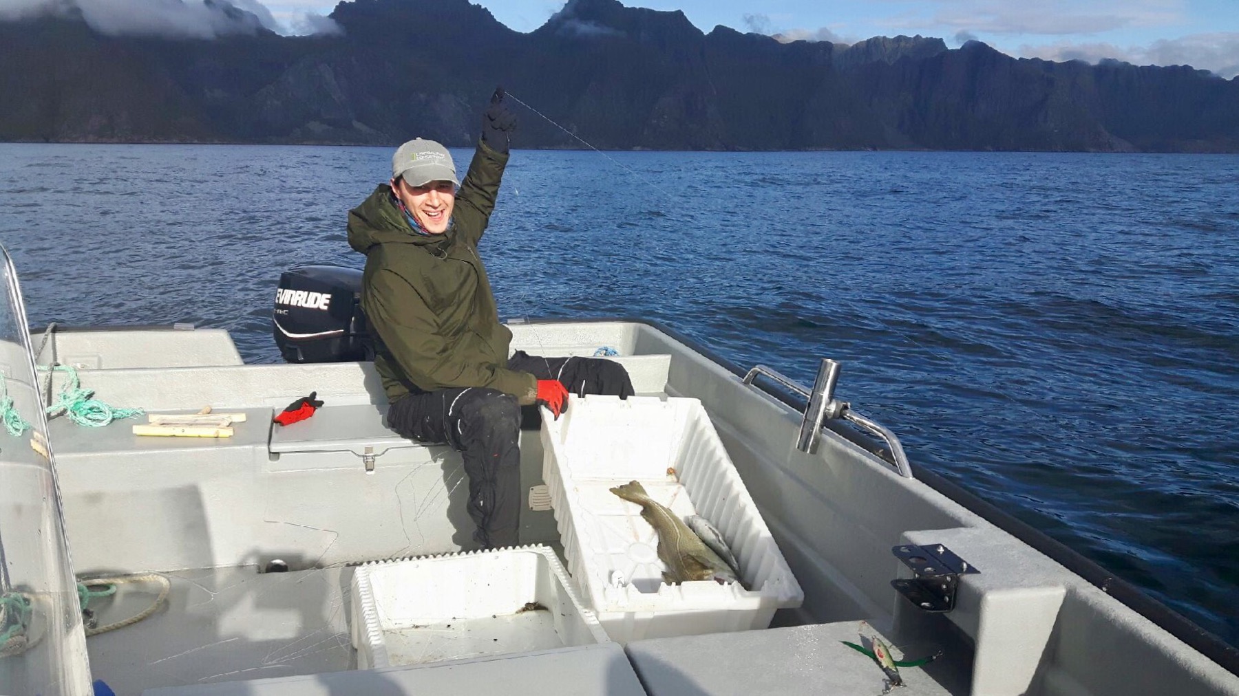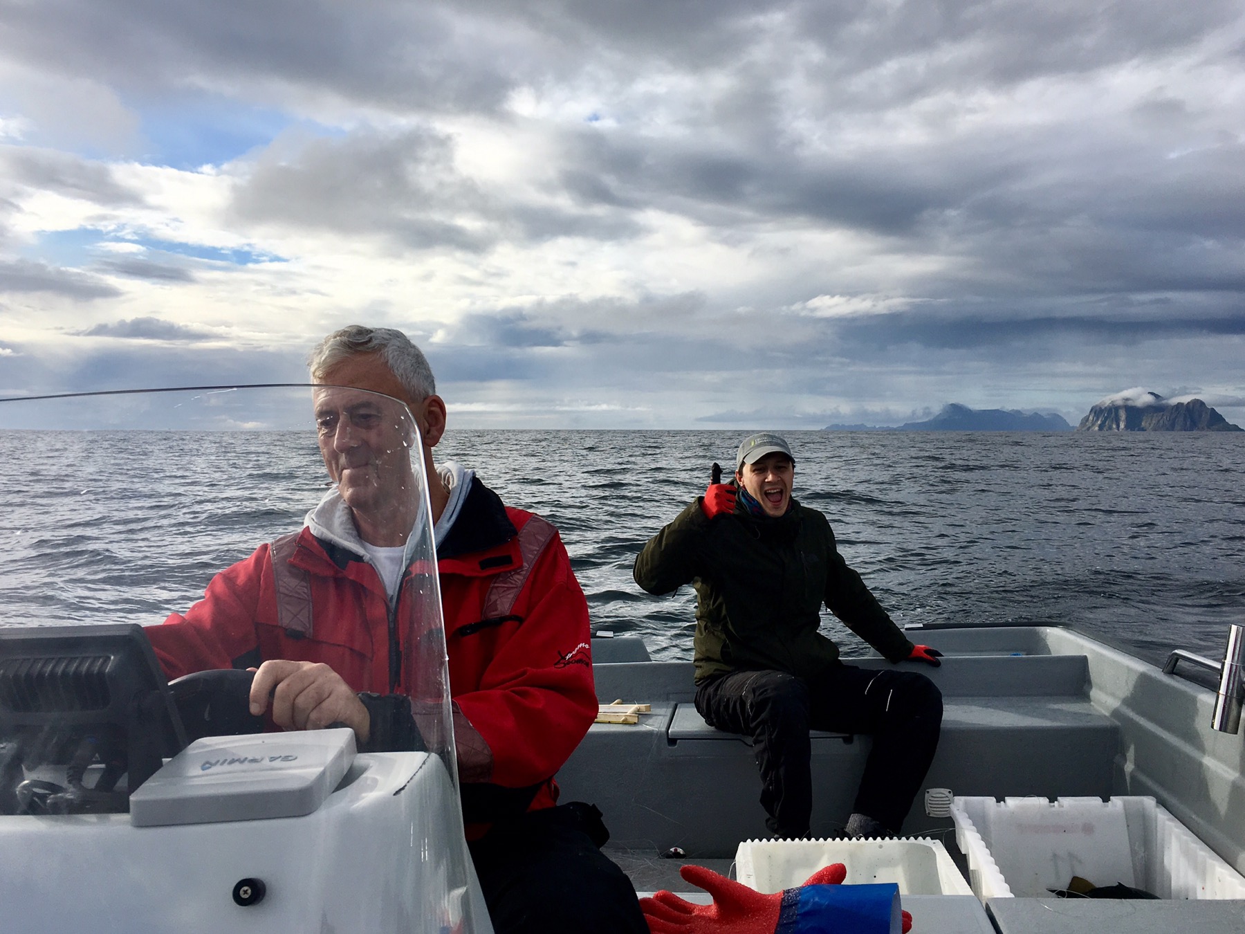 Ce matin, nous avons eu la chance d’aller pêcher avec Roy, notre hôte Airbnb, ancien pêcheur en mer. Destination : le large des îles Lofoten. Objectif : remplir nos caisses blanches de poiscaille ! À vrai dire, Simon et moi n’étions pas très exigeants tant l’aventure en tant que telle était déjà exceptionnelle en soit.