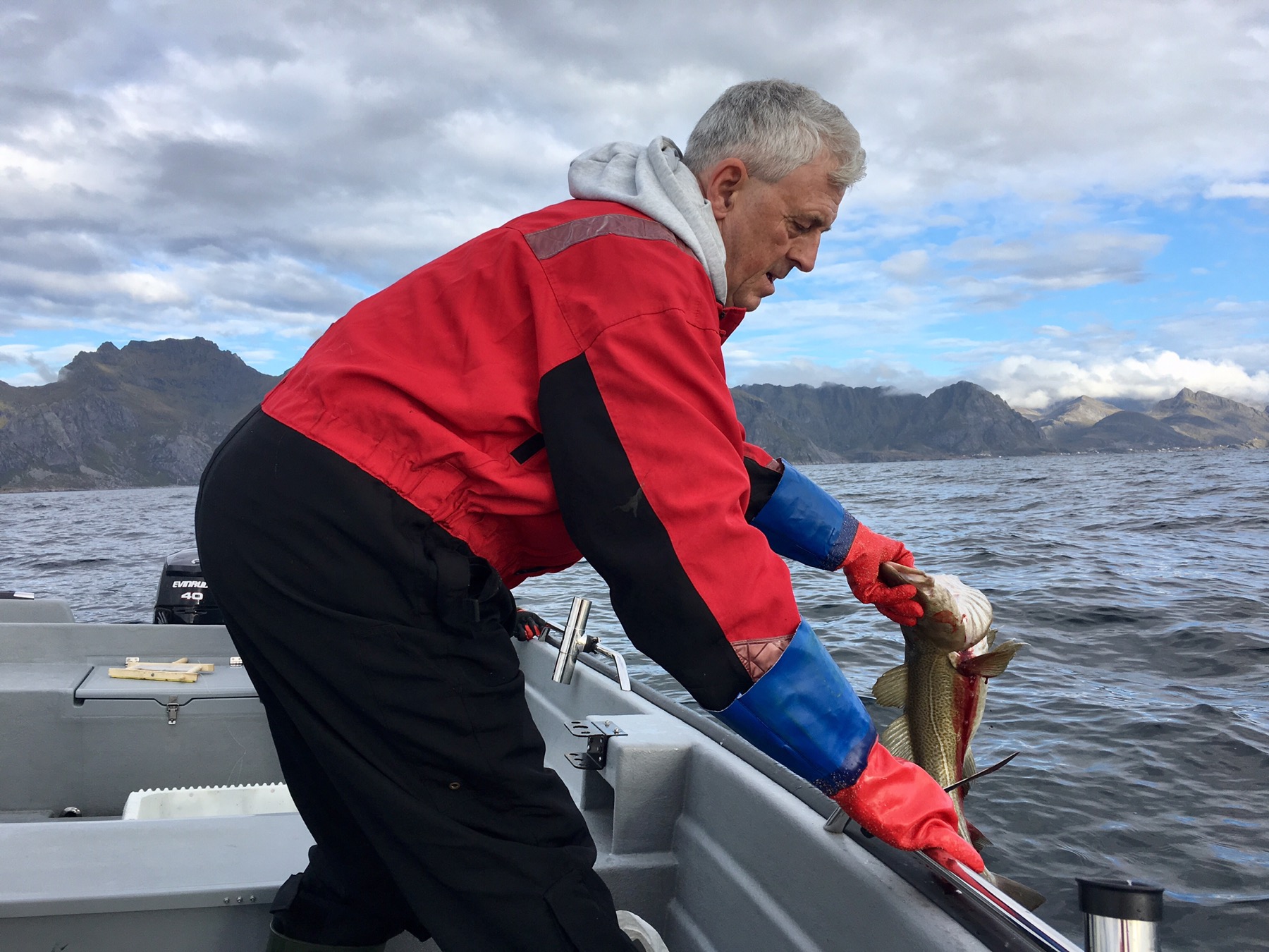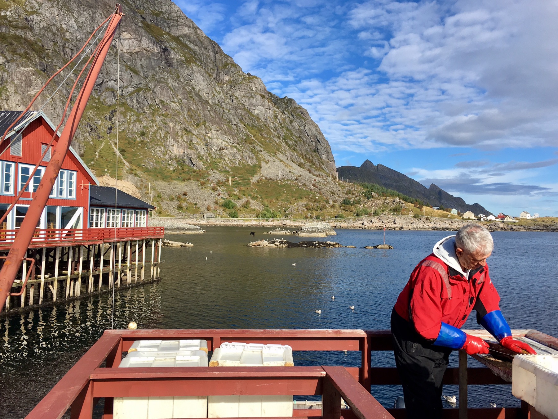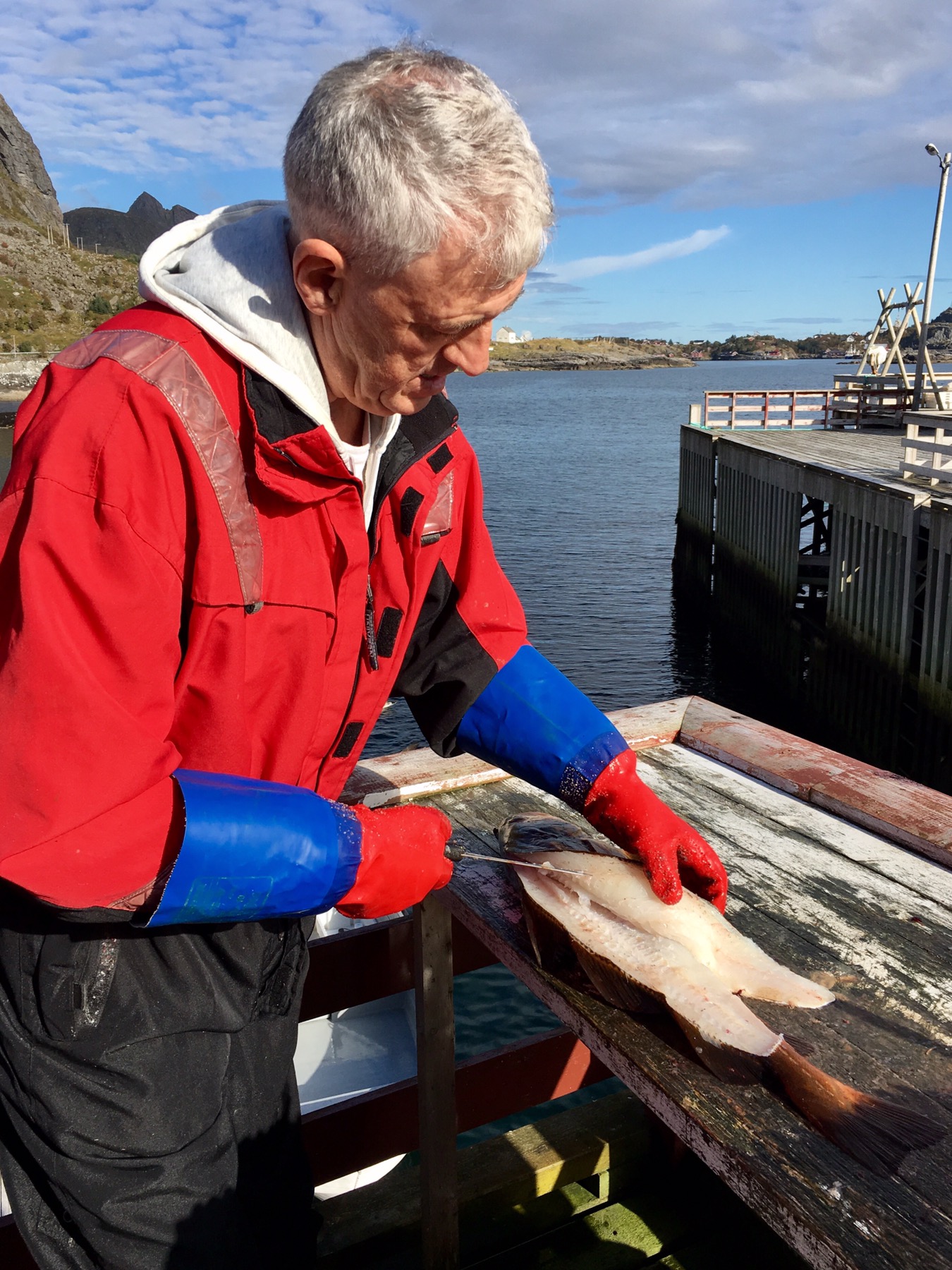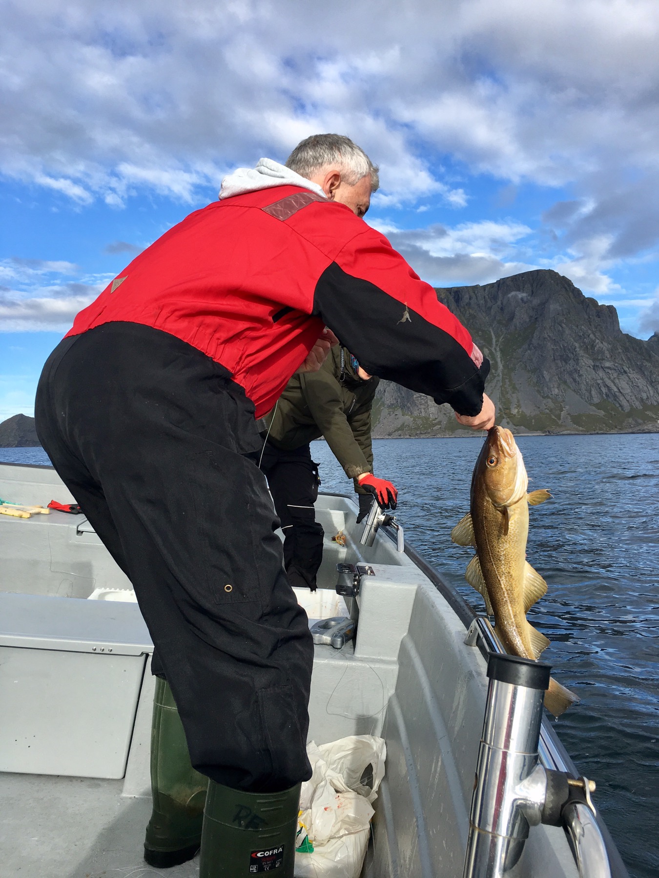 Ce matin, nous avons eu la chance d’aller pêcher avec Roy, notre hôte Airbnb, ancien pêcheur en mer. Destination : le large des îles Lofoten. Objectif : remplir nos caisses blanches de poiscaille ! À vrai dire, Simon et moi n’étions pas très exigeants tant l’aventure en tant que telle était déjà exceptionnelle en soit.
