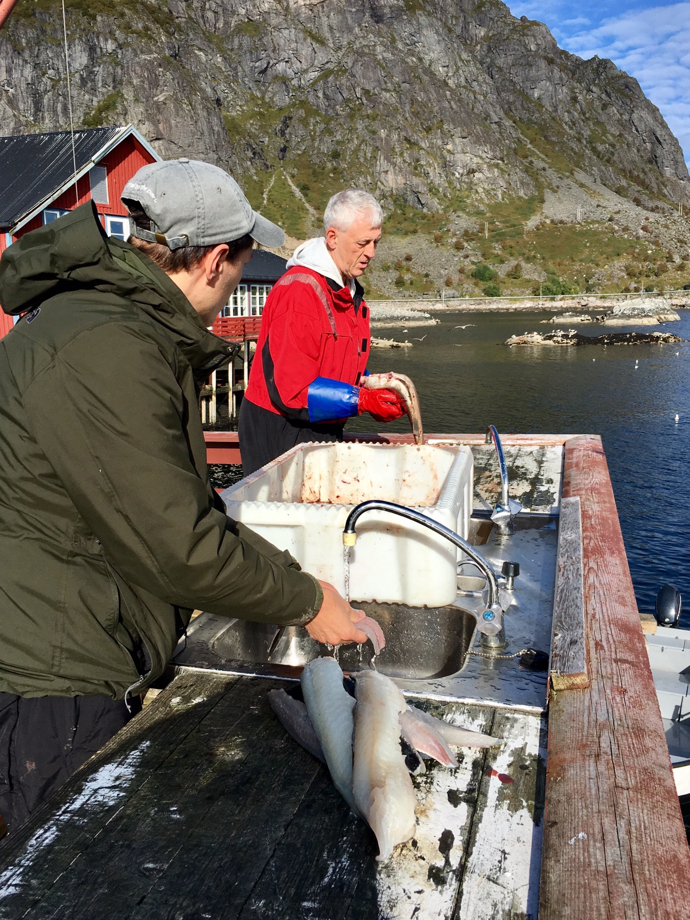 Les garçons vident et nettoient les poissons que nous mangerons frais ce soir (ou congèlerons car on n’a pas faim à ce point !)