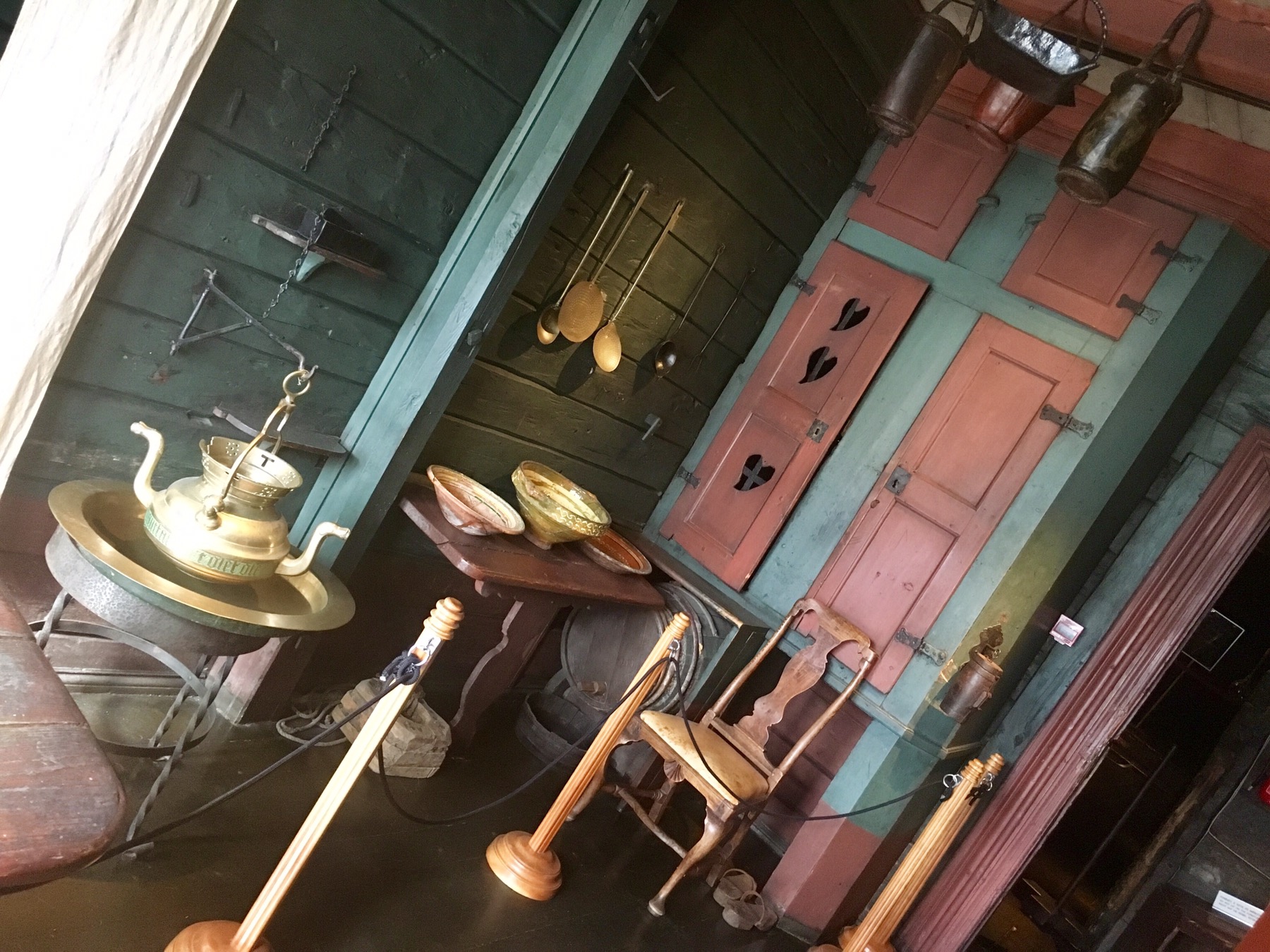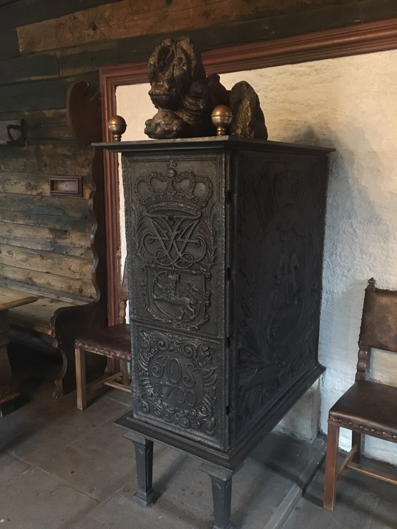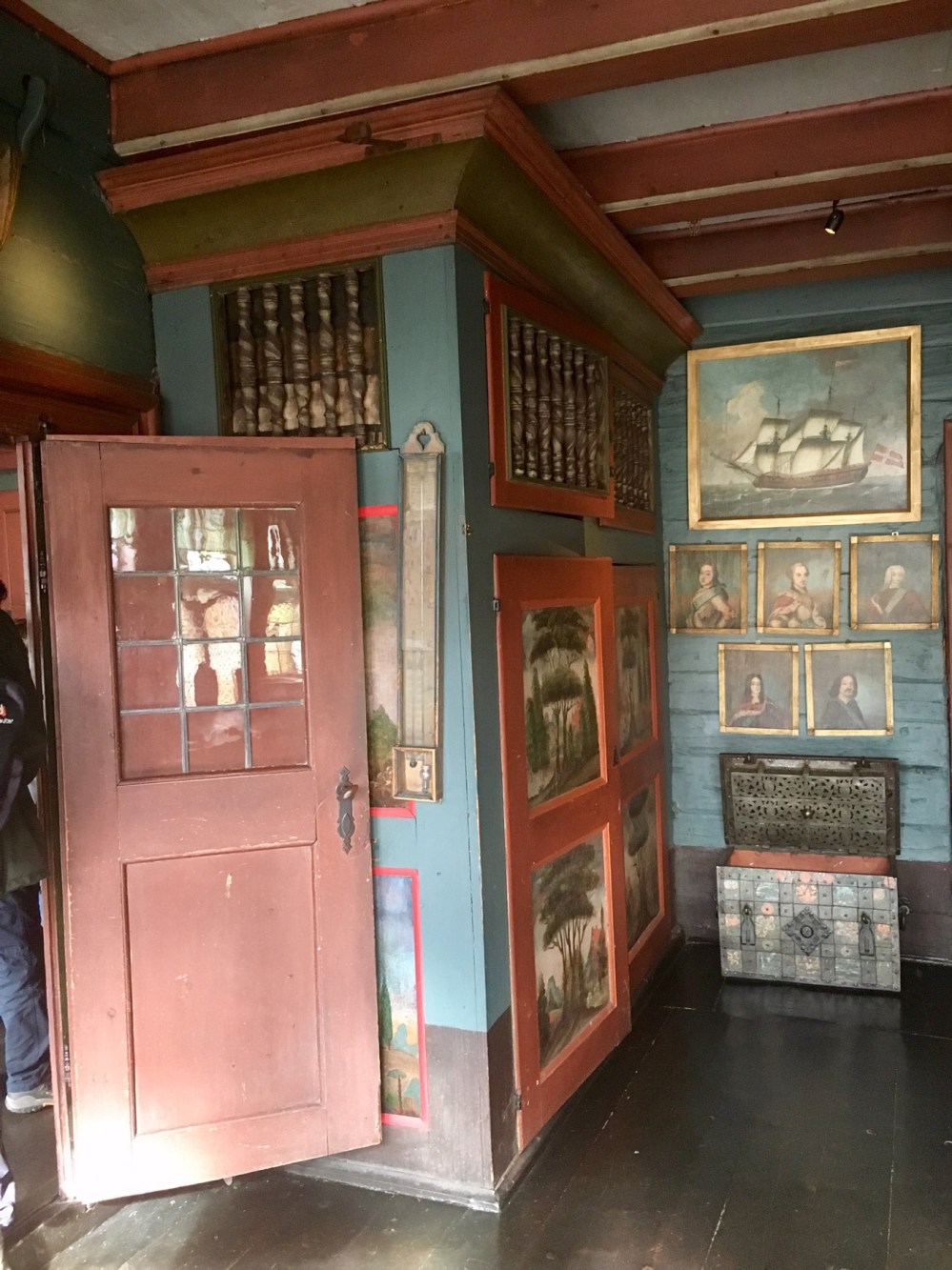 En raison du risque élevé d’incendie, les maisons ne comportaient ni éclairage ni chauffage ni cuisine. Les cuisines se situaient dans d’autres bâtiments, les Schøtstuene, où on trouvait aussi quatre salles communes dans lesquels les grandes réunions et les repas chauds d’hiver étaient organisés. Ce sont les seuls bâtiments de Bryggen où le recours à un feu ouvert était autorisé. C’est également dans ces salles communes qu’était dispensée l’instruction, que siégeait le tribunal et que l’on donnait les fêtes. Pour l’anecdote, un membre de la ligue ayant « malencontreusement » fait un enfant à une habitante de Bergen était jugé et condamné à offrir de la bière à toute la communauté hanséatique ! Pas si pire la punition. Sauf qu’un tonneau de bière pouvait coûter le prix d’une maison à l’époque et que bien souvent c’est le gérant qui devait payer les frais pour son apprenti fauteur… On comprend mieux l’usage d’un lit pour deux apprentis du coup… ça limitait peut être les dégâts !