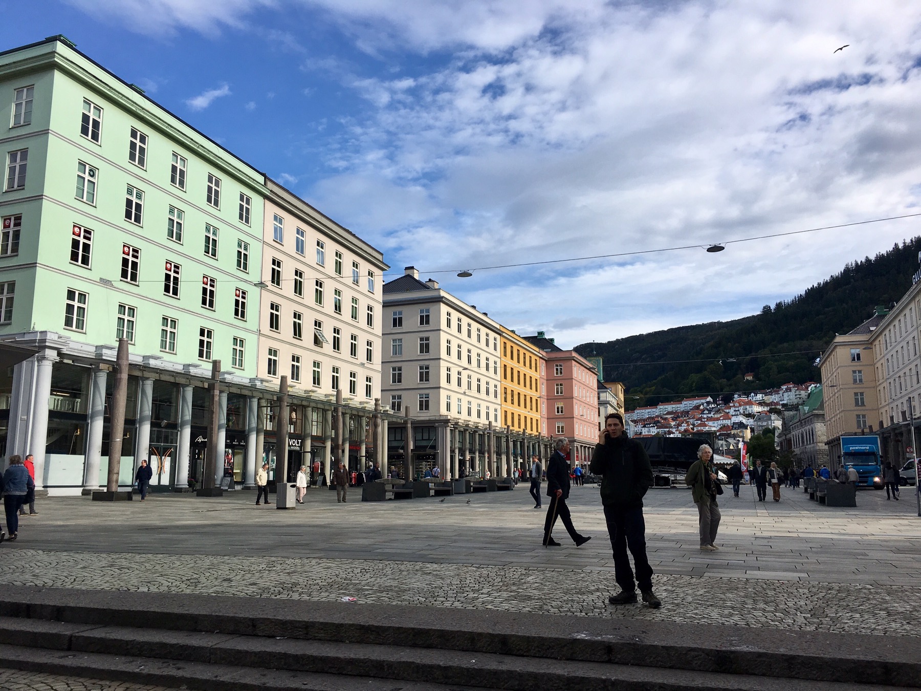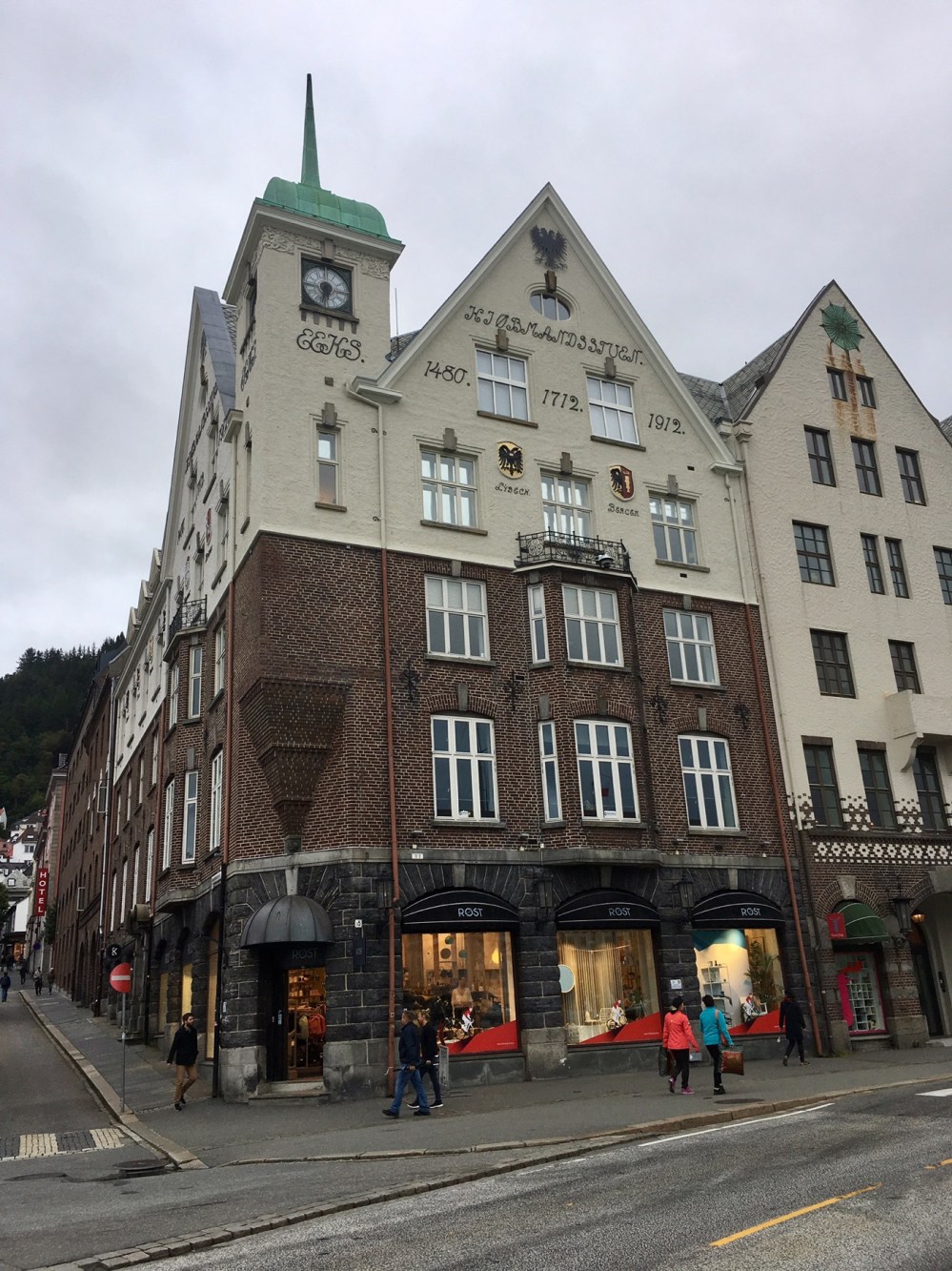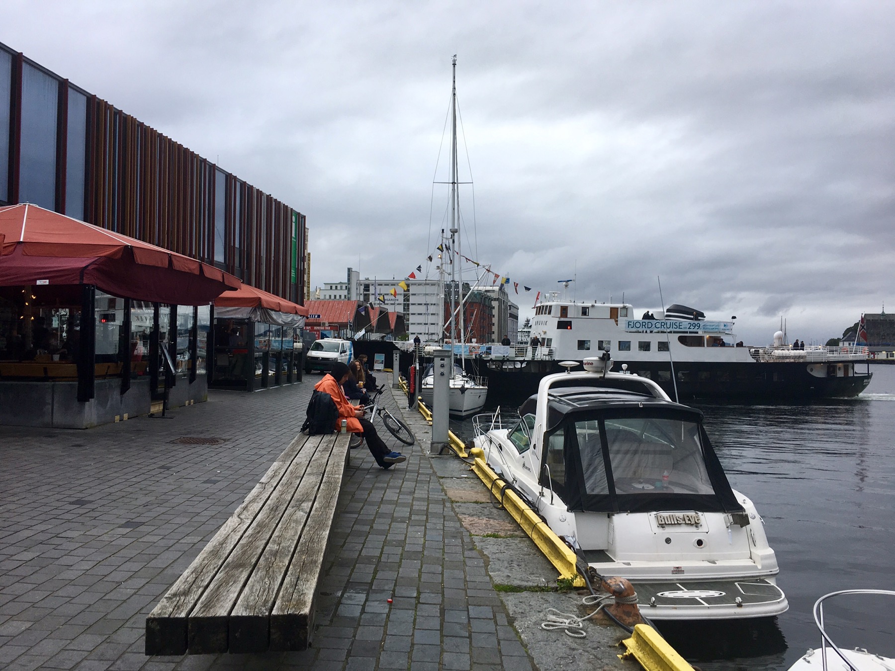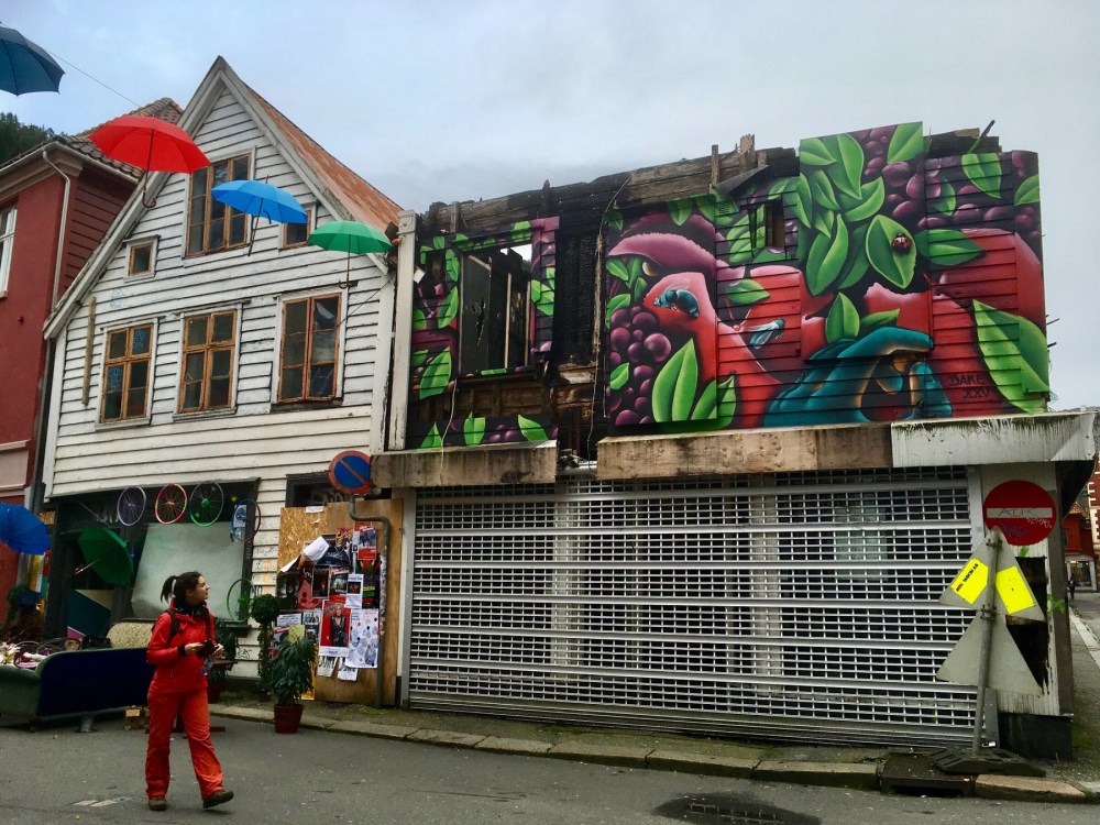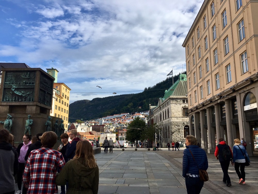 Nos premiers pas dans Bergen nous enchantent déjà. Les petites ruelles s’ouvrent sur de grandes places aérées et animées. Les boutiques trendy sont partout et nos anciens réflexes de parisiens ne résistent pas à faire du lèche-vitrine (mais que du lèche-vitrine car bonjour la ruine !!).