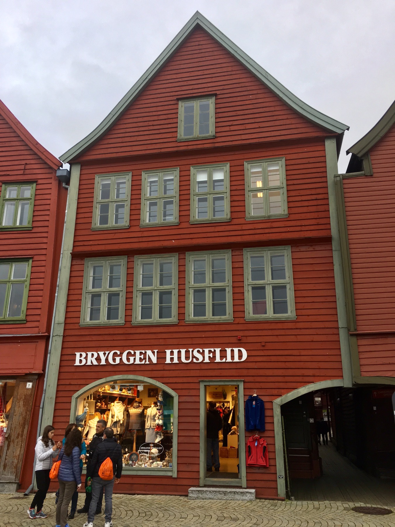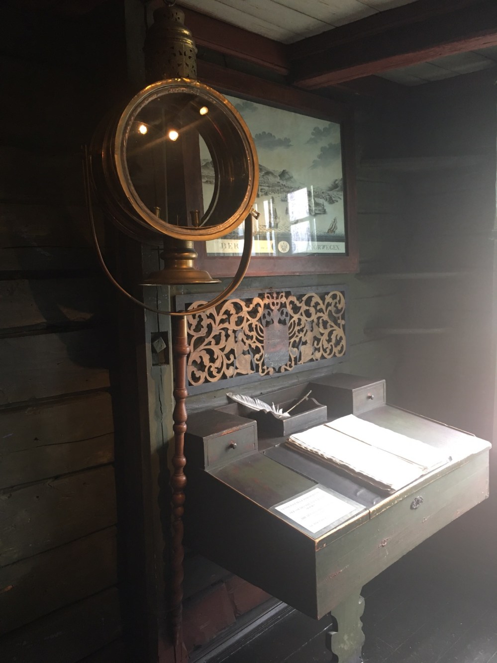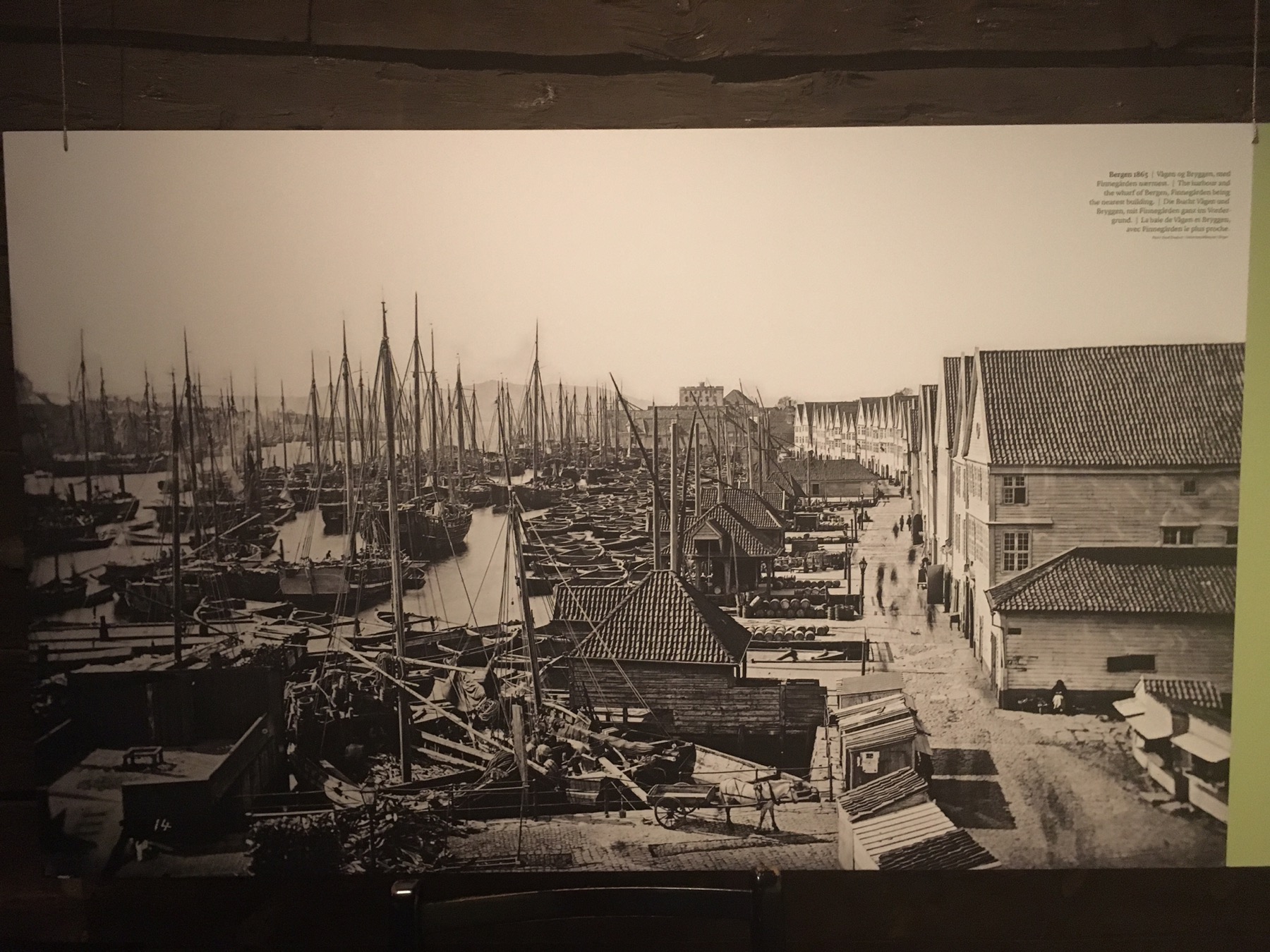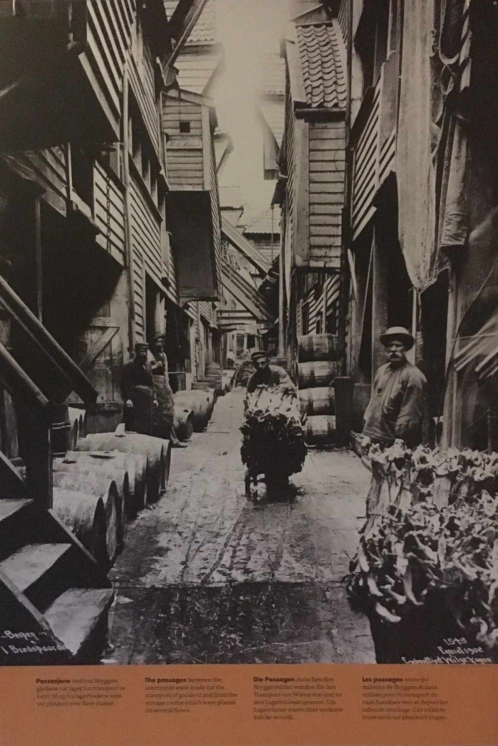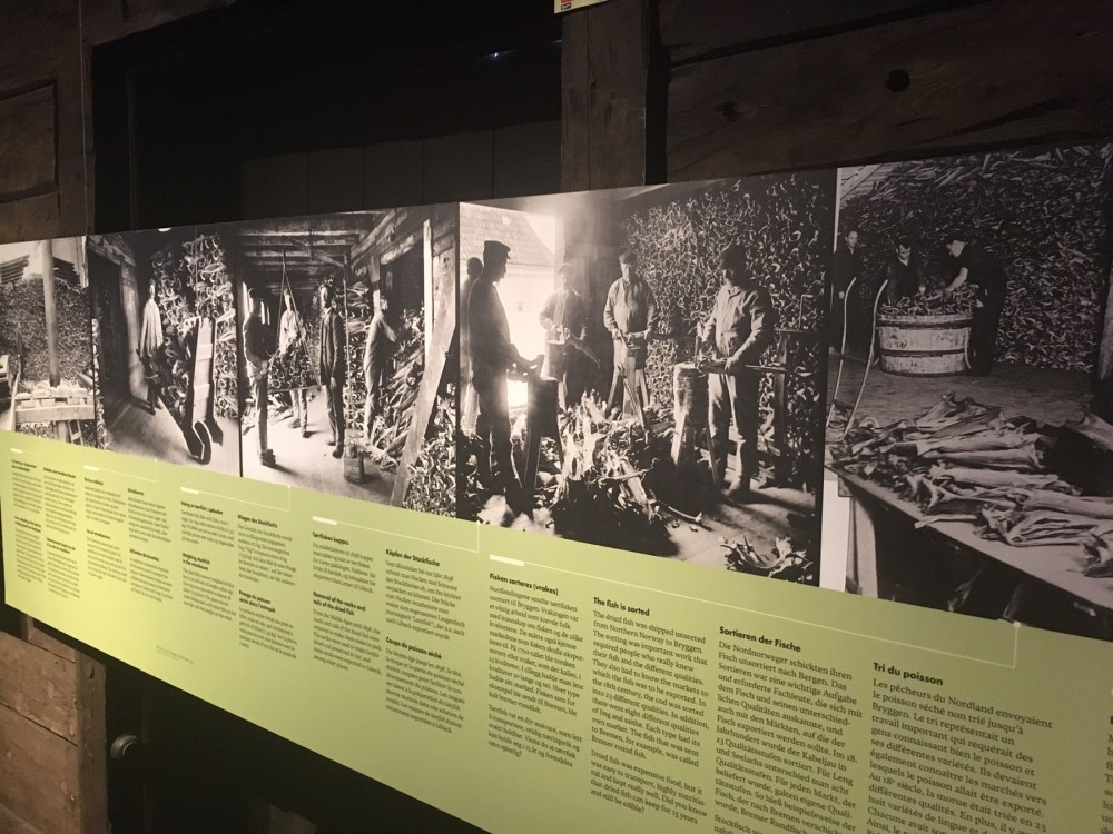 Le musée que nous avons visité a été construit en 1704, dans le style des bâtiments prédécesseurs détruits au cours de l’incendie qui avait ravagé la ville en 1702. Chaque bâtiment se composait alors de plusieurs maisons de commerce. Le musée dispose de deux maisons dont les locaux servaient à entreposer et préparer la morue séchée et l’huile de foie de morue (qui servait pour l’éclairage), ainsi que des bureaux et des chambres à coucher.