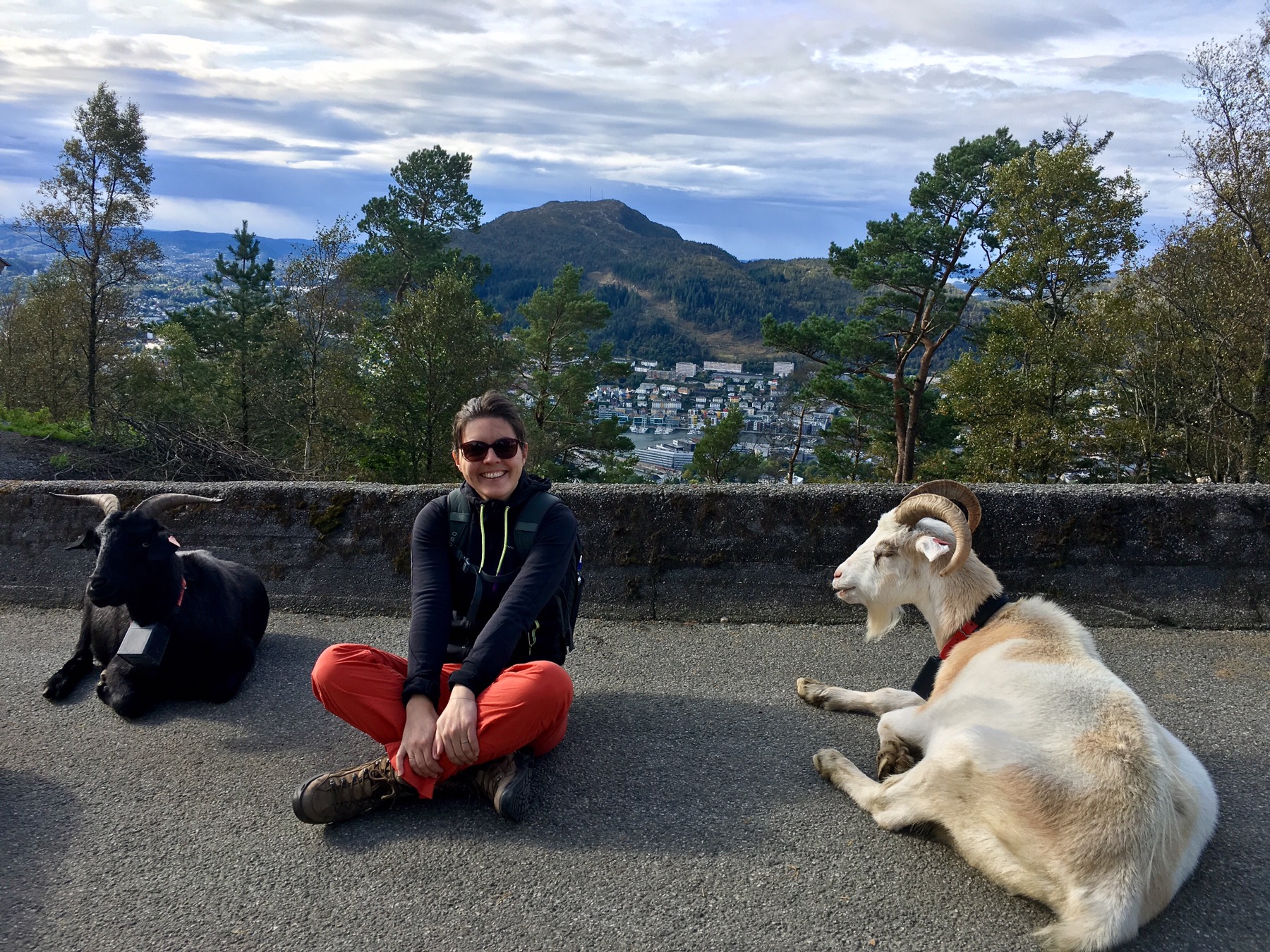 Le mont Fløyen est le point de départ de nombreuses randonnées. Nous n’hésitons pas et choisissons une petite marche de 2h qui nous emmènera directement parmi les chèvres puis en pleine forêt ! Incroyable ! Dire que la 2e plus grande ville de Norvège est juste en contre bas !