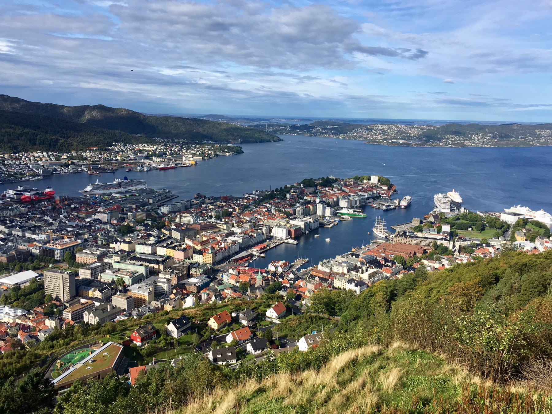 Voilà une ville qui ferait de l’oeil à plus d’un citadin à la recherche d’un peu de nature. Prise entre sept montagnes, elle se love autour d’un petit port bien protégé. Ses 250 000 habitants jouissent de ces quais animés, de ses fières maisons en bois parfois perchées sur des collines aux airs californiens. Il y pleut souvent et cela la sauvegarde peut-être d’une trop grande affluence migratoire… Pour notre part, nous avons eu le luxe de la visiter sous quelques rayons de soleil ☀️ On vous emmène !