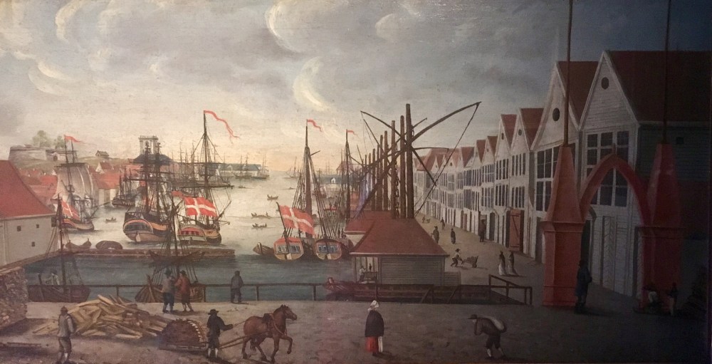 La Hanse est une organisation allemande qui a commercé durant plusieurs siècles entre la mer du Nord et la mer Baltique. Entre 1360 et 1761, les commerçants hanséatiques originaires d’Allemagne du Nord ont tenu un comptoir dans la cité de Bergen, plus précisément dans le quartier de Bryggen. L’activité consistait principalement à exporter de la morue séchée provenant du Nord de la Norvège (pour ne pas citer les Lofoten), et à importer des céréales produites dans les pays de la Mer Baltique. Les villes les plus importantes étaient Bruges, Hambourg, Bergen, Londres et Novgorod. La ligue y avait établi ses propres règles et ses propres institutions politiques, souvent plus puissantes que celles des États. D’ailleurs, le quartier de Bryggen était barricadé et aucun contact ne devait avoir lieu entre les habitants de Bergen et les membres de la Hanse. Quelques amourettes sont toutefois connus des livres d’Histoire 😉