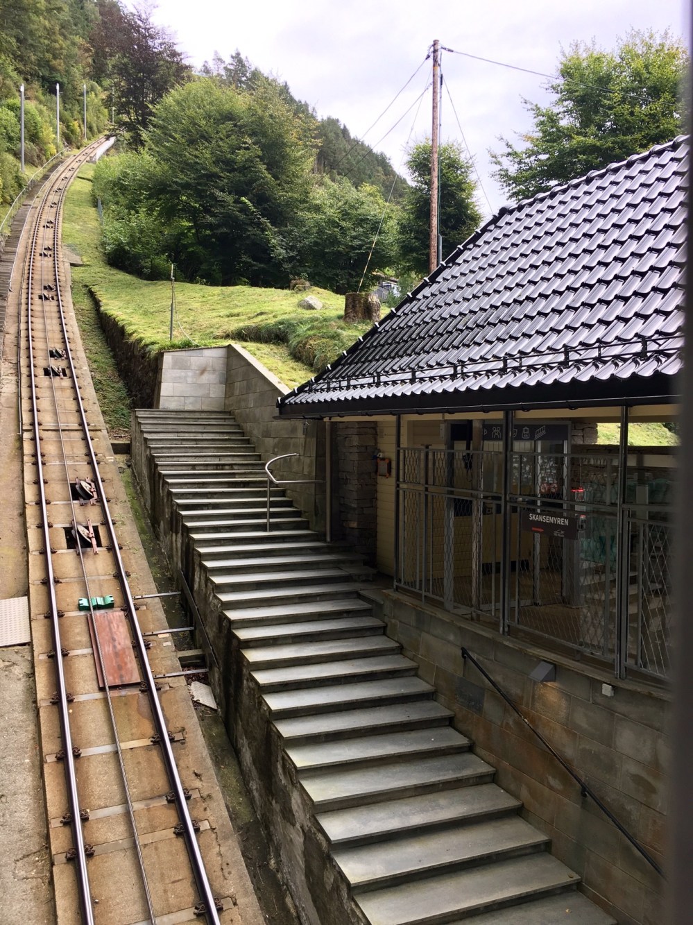 Direction le funiculaire de Fløyen qui permet d’atteindre la colline surplombant la ville à 320m d’altitude en moins de 4mn !