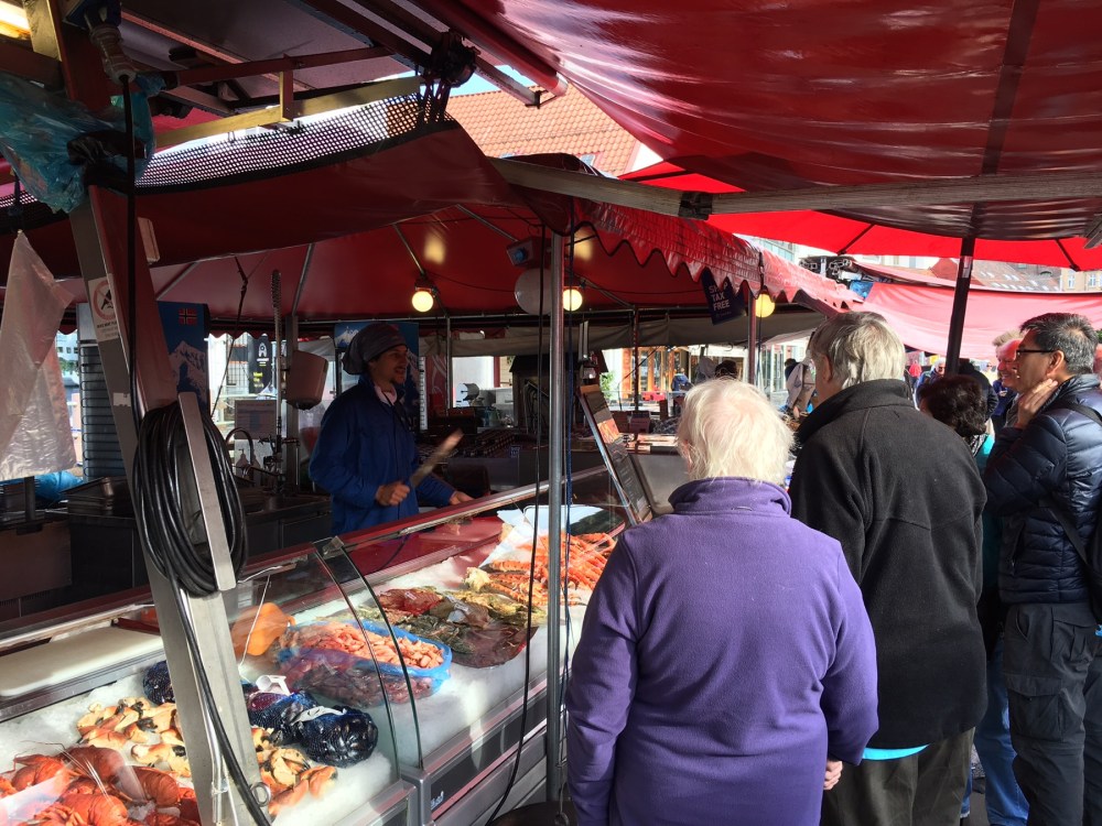 sur le marché aux poissons avez vous vu les crabes royaux et la viande de baleine fumée (toute noire) avez vous vu un bateau de hurtigruten accosté ?