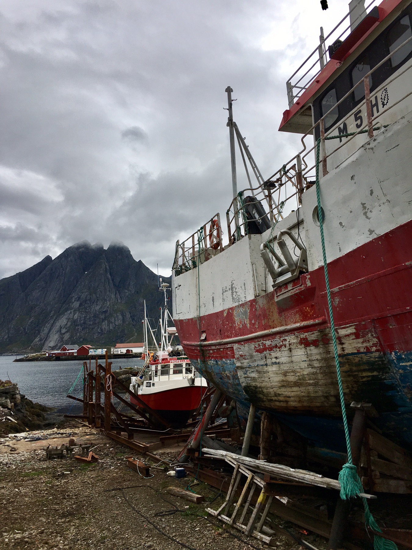 On est vraiment bien ici. Un air de dolce vita plane sur les Lofoten, la brise du cercle arctique en plus. Les ciels et le soleil nous offrent des lumières dignes d’un tableau Renaissance. On déguste.