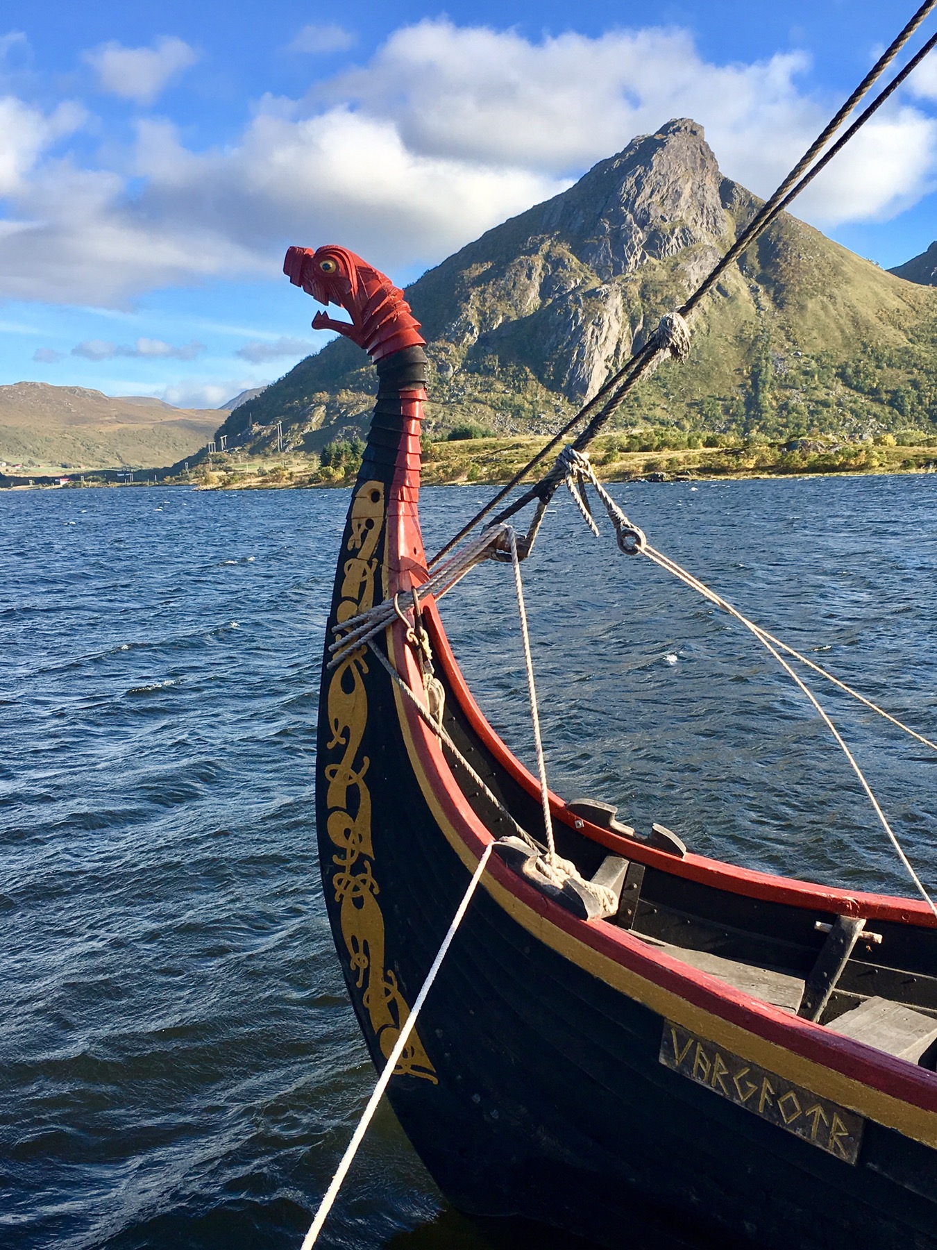 Réplique d’un drakkar Viking sur lequel embarquent les touristes l’été pour entrainer leurs biceps à coups de rame !